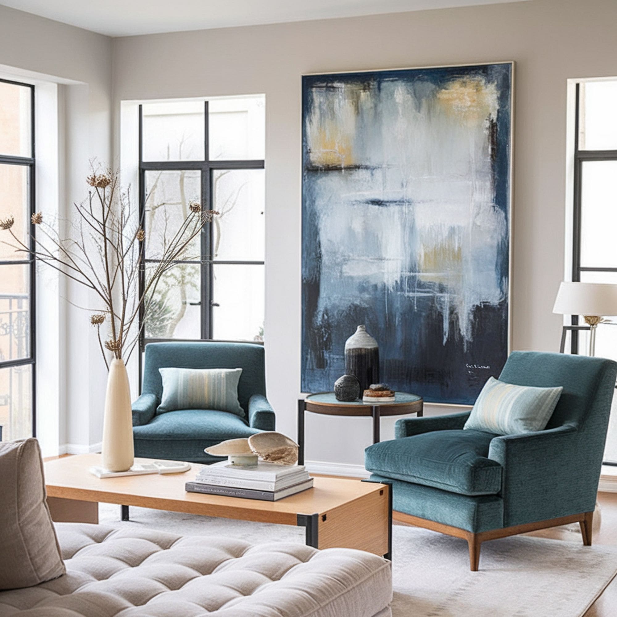 A striking piece of art is capable of becoming the main focus of attention in the living room. The trick is for it to be oversized like you can see in this example. This tall artwork looks imposing and majestic in this simple-looking living room. Handmade paintings like this one can get quite expensive when purchased in particularly large sizes, but the resulting visual effect could be worth it in the end.