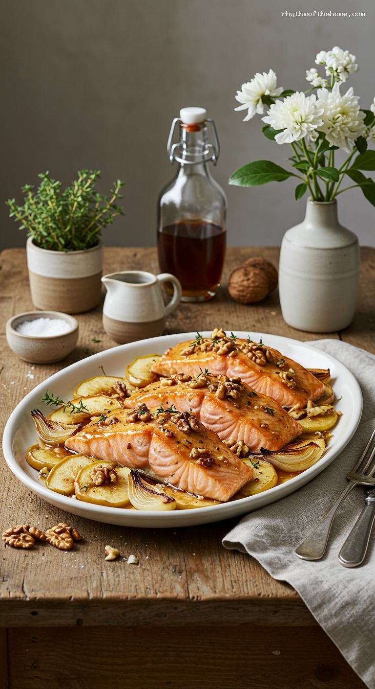 Maple-Mustard Glazed Salmon with Apples and Onions