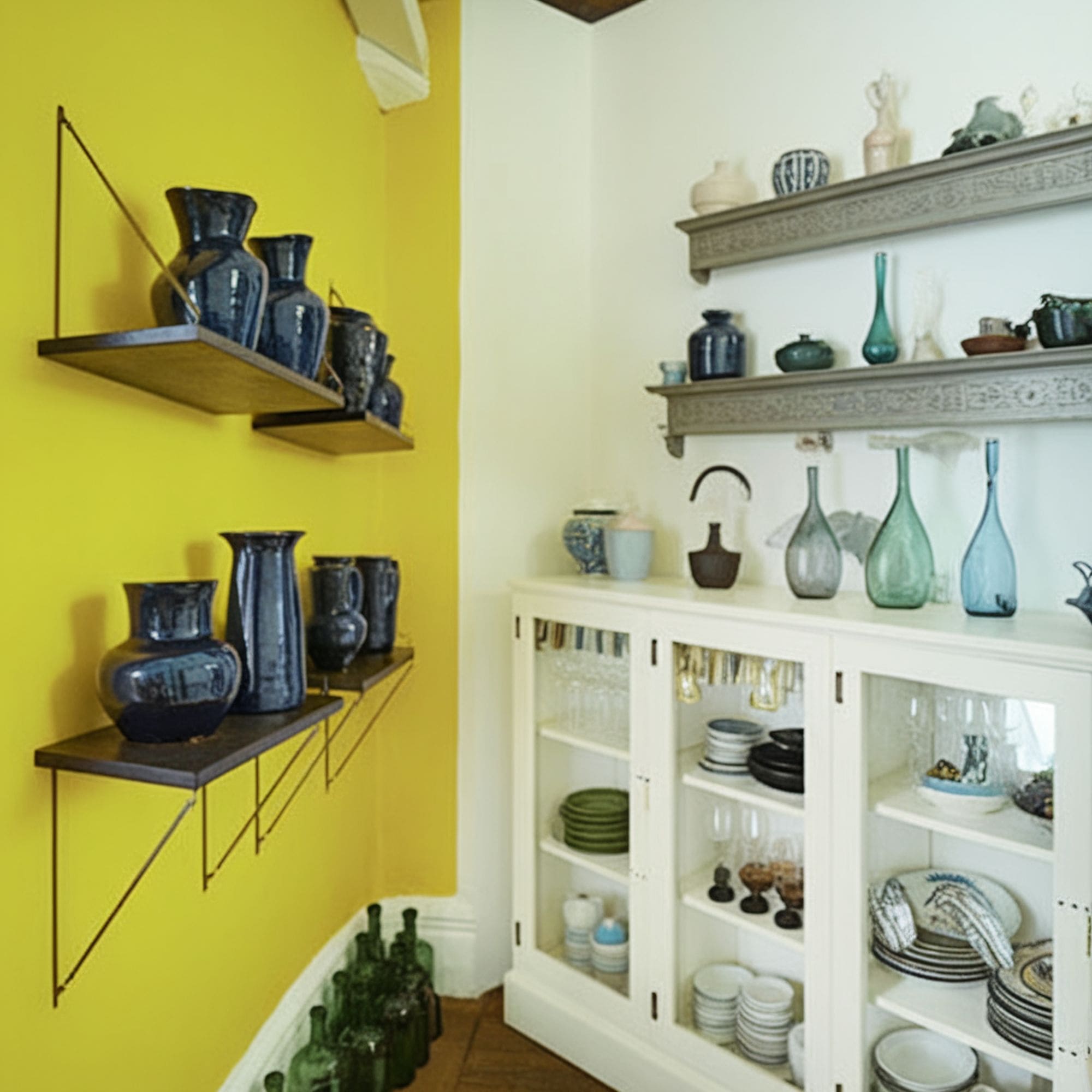 While maximalists seem at odds with Marie Kondo’s organizing principles, it turns out that nobody likes clutter. It’s a bit risky in that regard when you’re trying to decorate the maximalist home. To avoid a cluttered look, you can count on effective storage solutions. Filling shelves with items in an organized manner will have an interesting effect as it enriches the environment while keeping clutter at bay. The floating shelves on this bright yellow wall provide a nice example of powerful storage for maximalist décor.