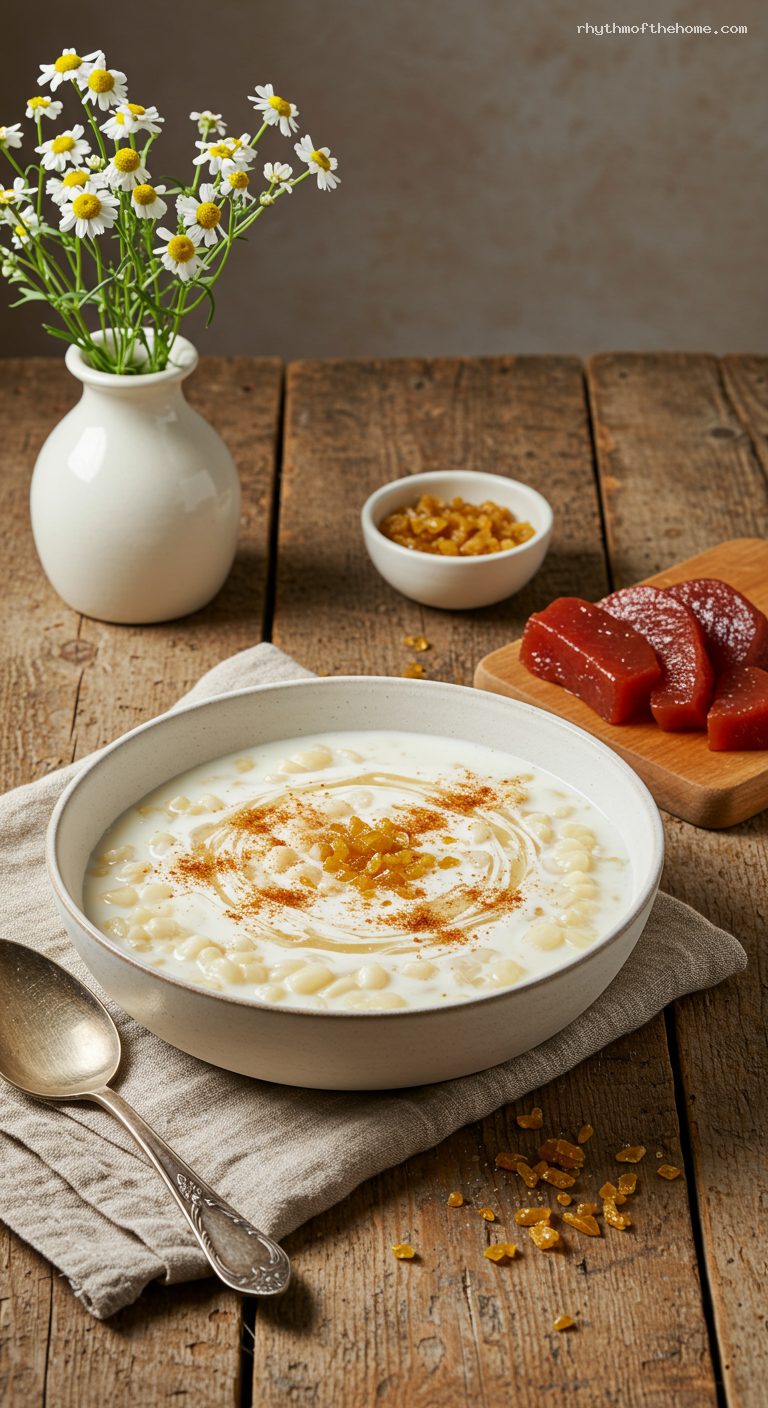 Begin checking at 2½ hours. The kernels are ready when they are plump, tender all the way through, and easy to mash between your fingers without chalky centers. You should have a lightly opaque, starchy broth. If it looks very thin, simmer 10–15 minutes more to concentrate; if too thick, add 1/2–1 cup hot water. Turn off the heat and rest 10 minutes.