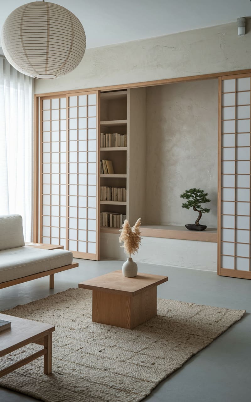 1. Serene Japandi Minimalist Living Room
