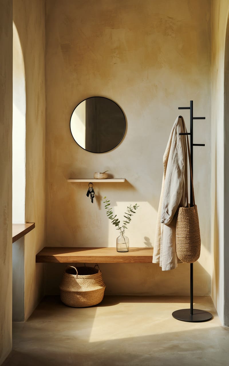 8. Earthy Minimalist Entryway with Natural Textures