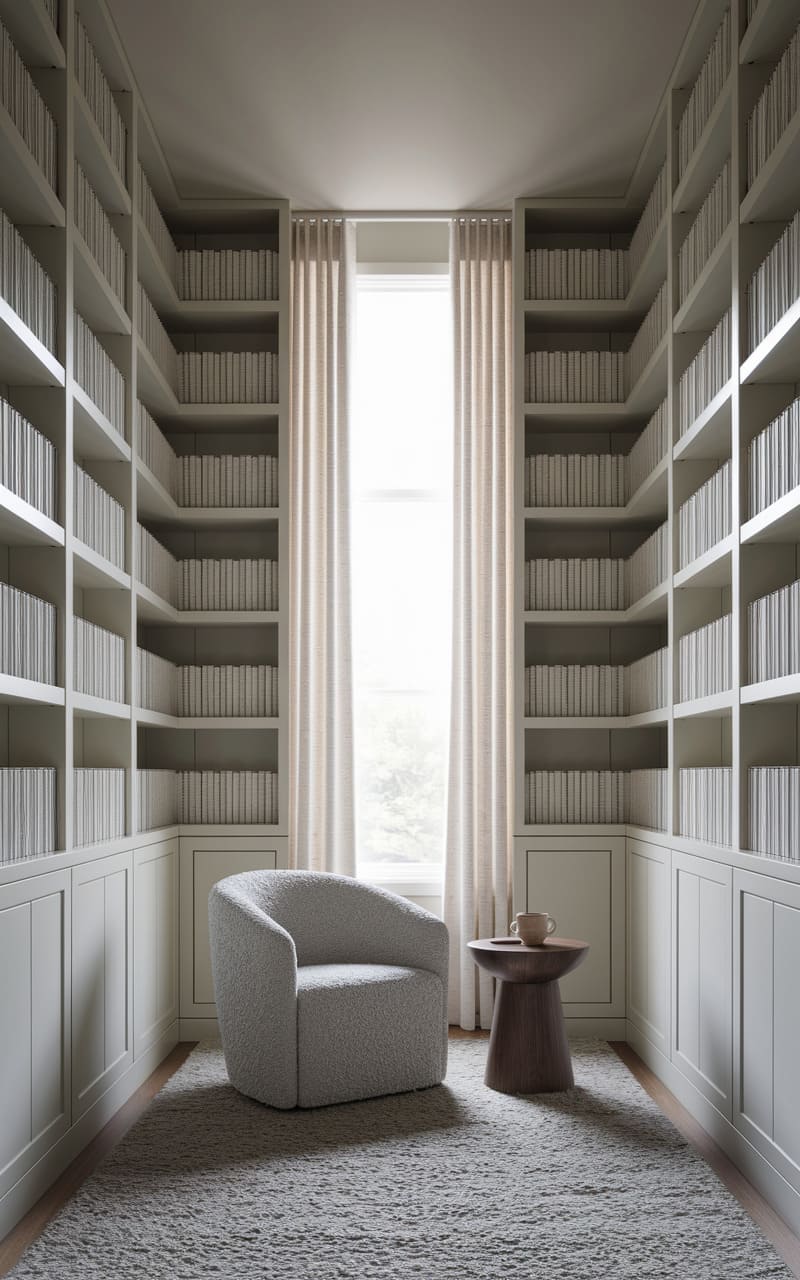9. Minimalist Home Library with Soft, Neutral Tones