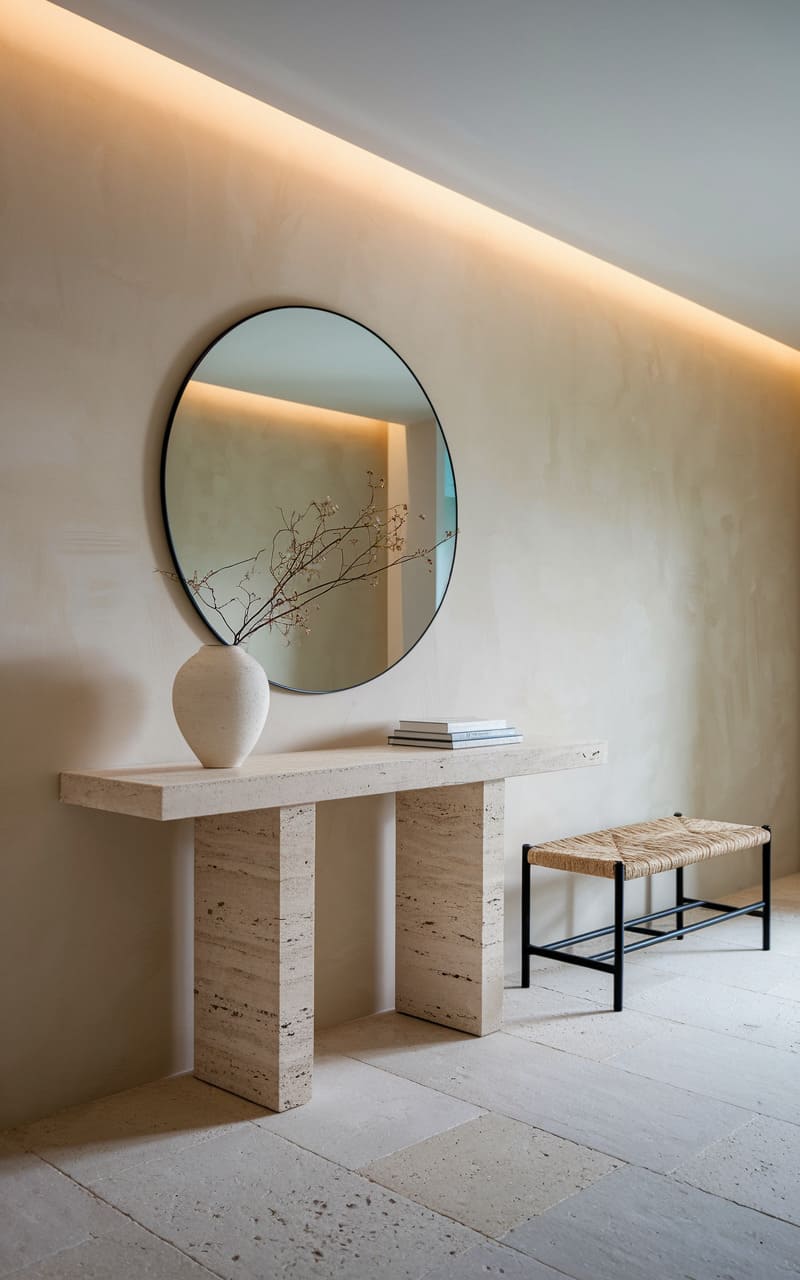 20. Minimalist Entryway with a Sculptural Console Table
