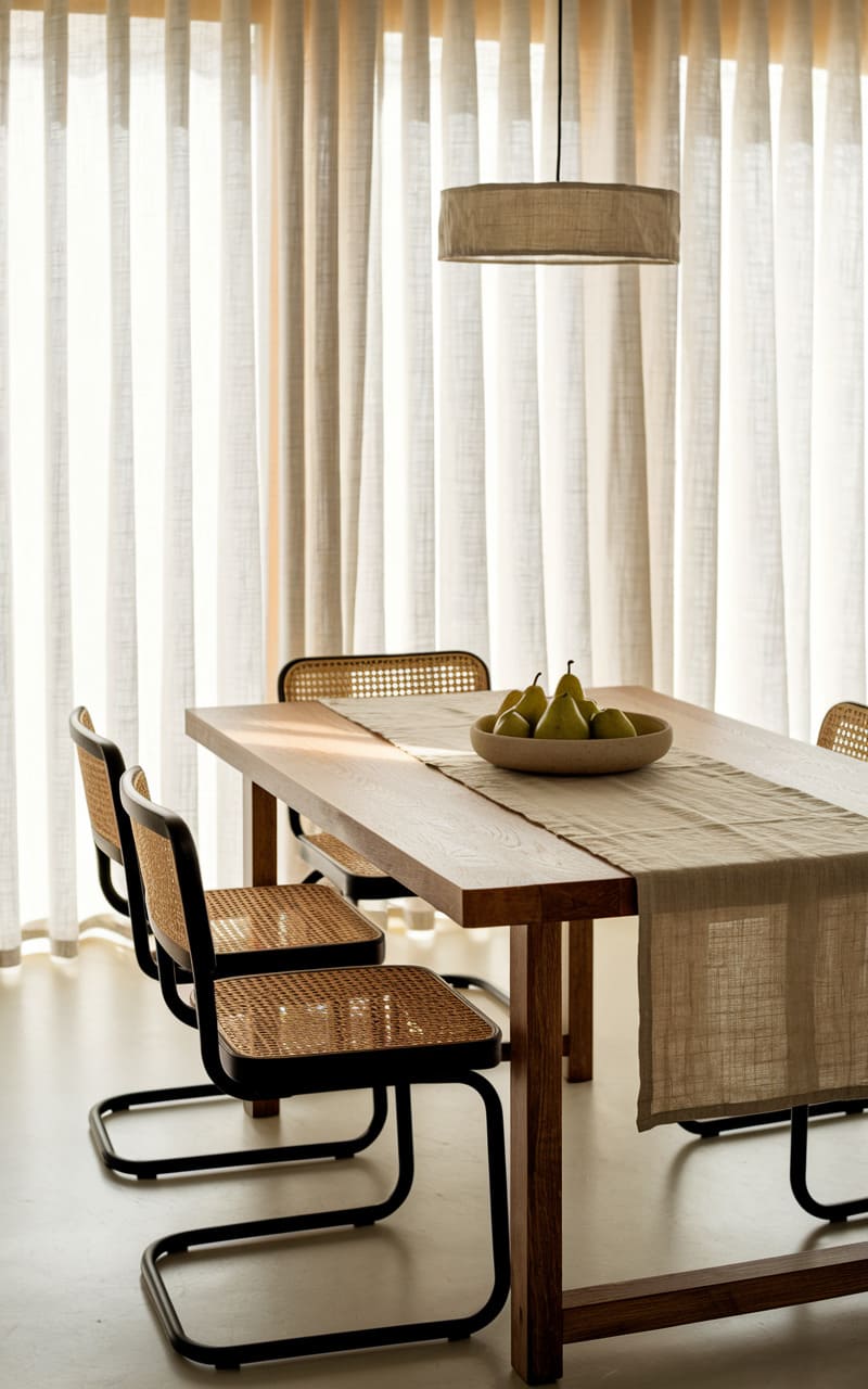 23. Minimalist Dining Room with a Linen Table Runner