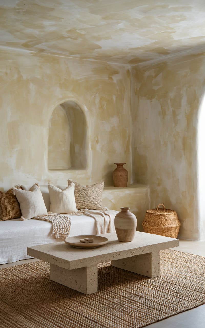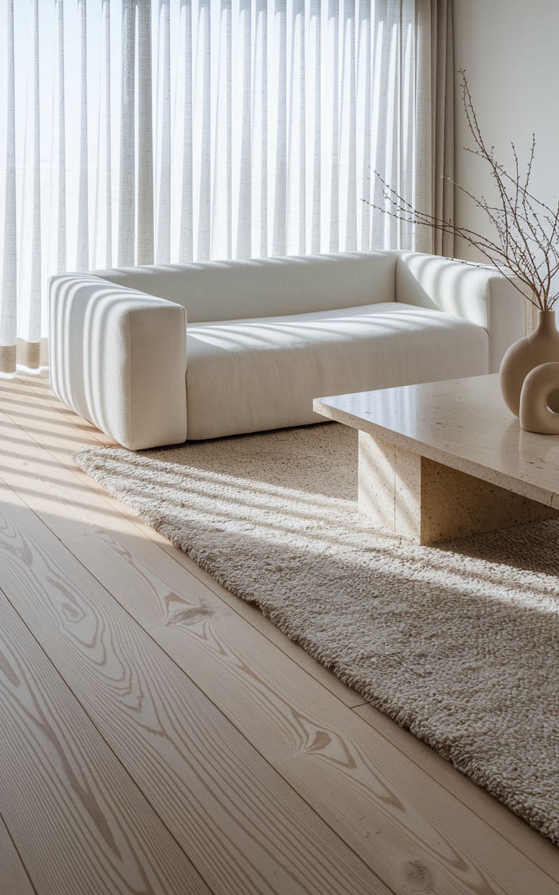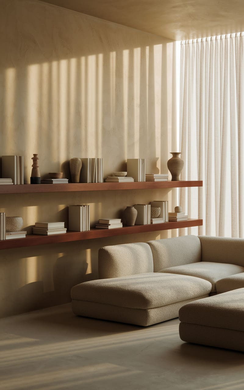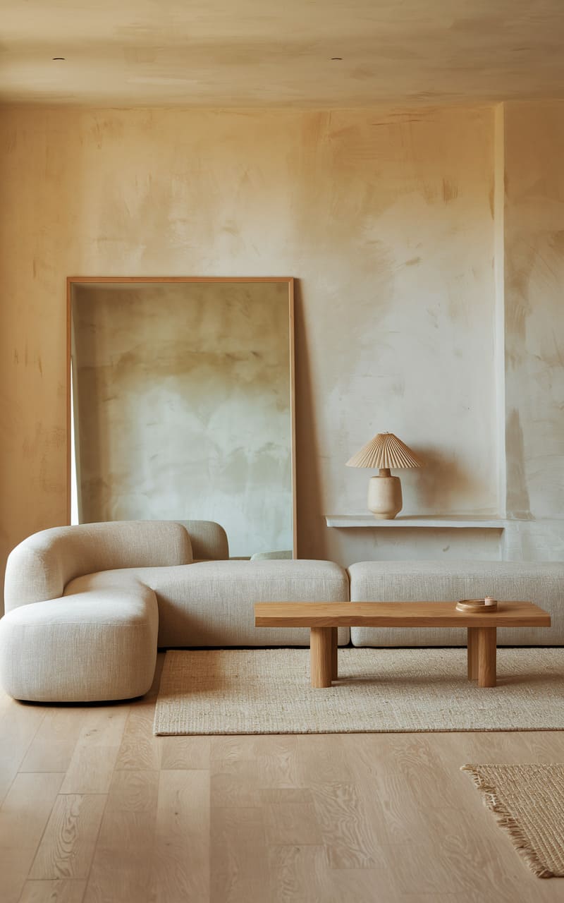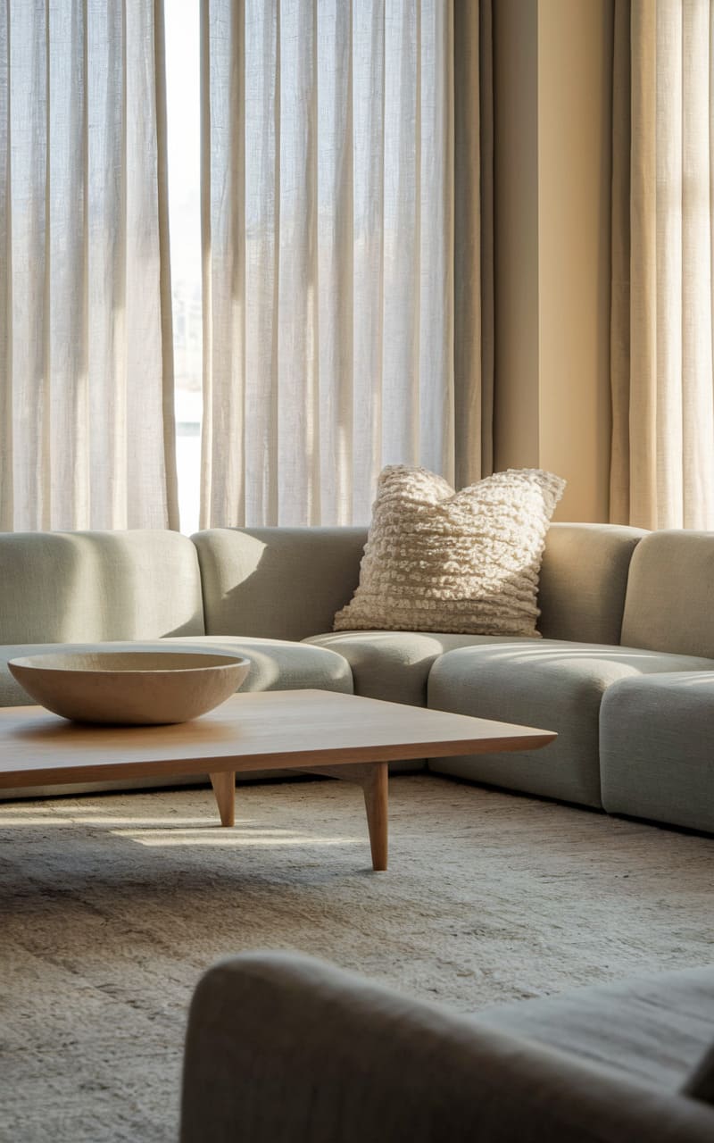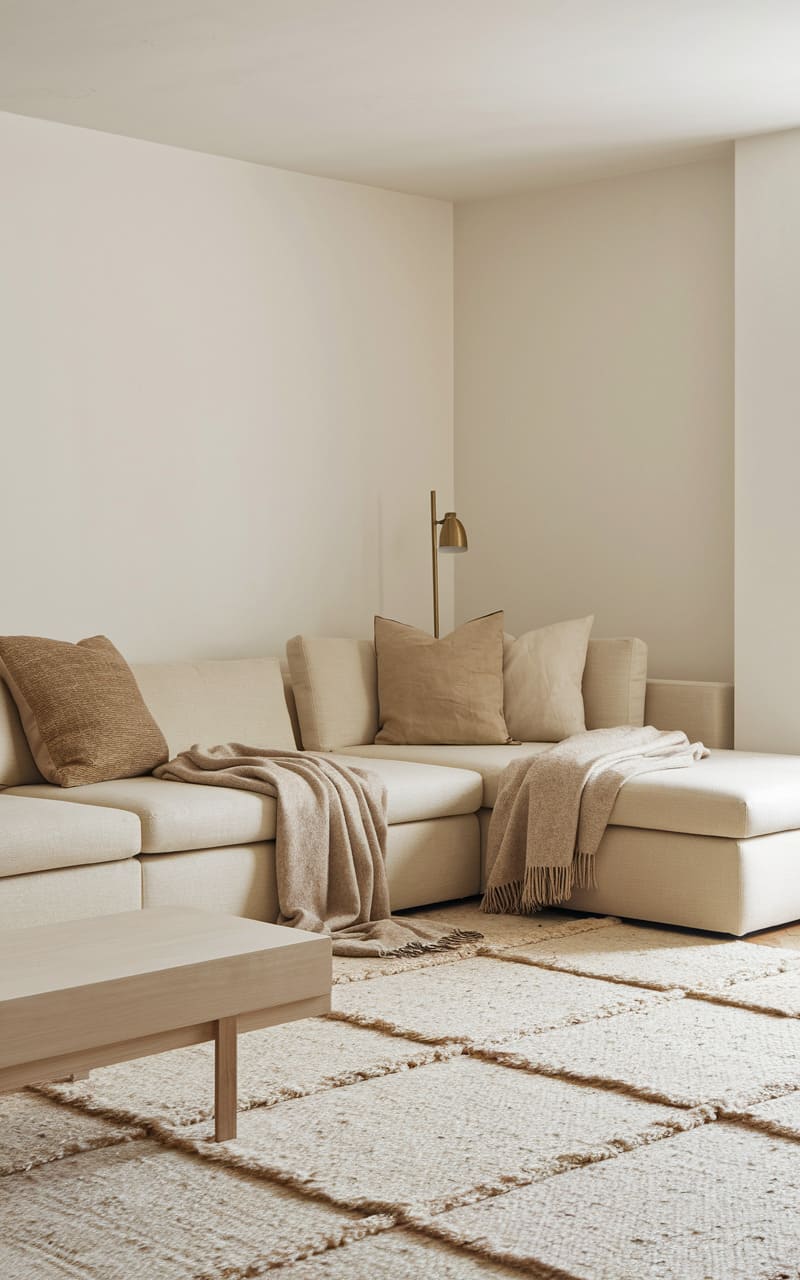 196. Minimalist Living Room with Beige and Wool Textures