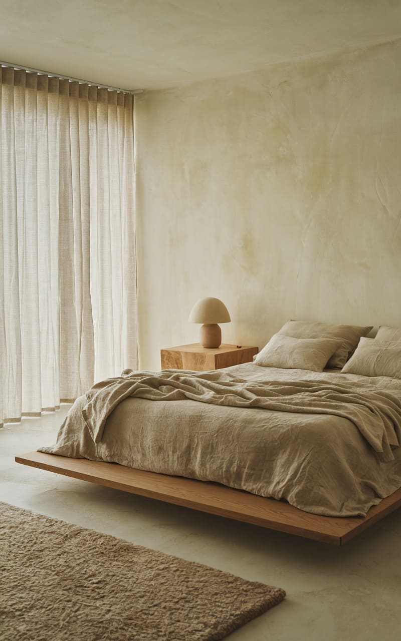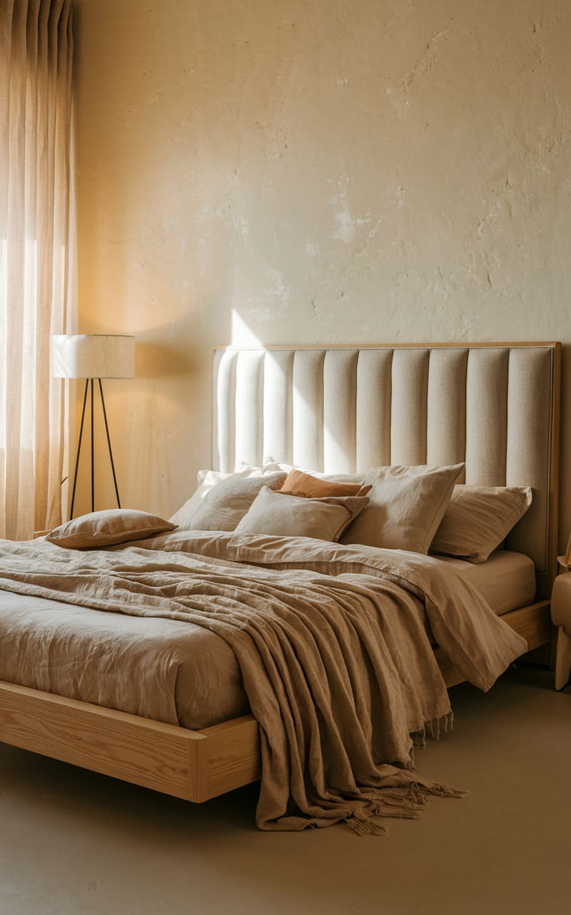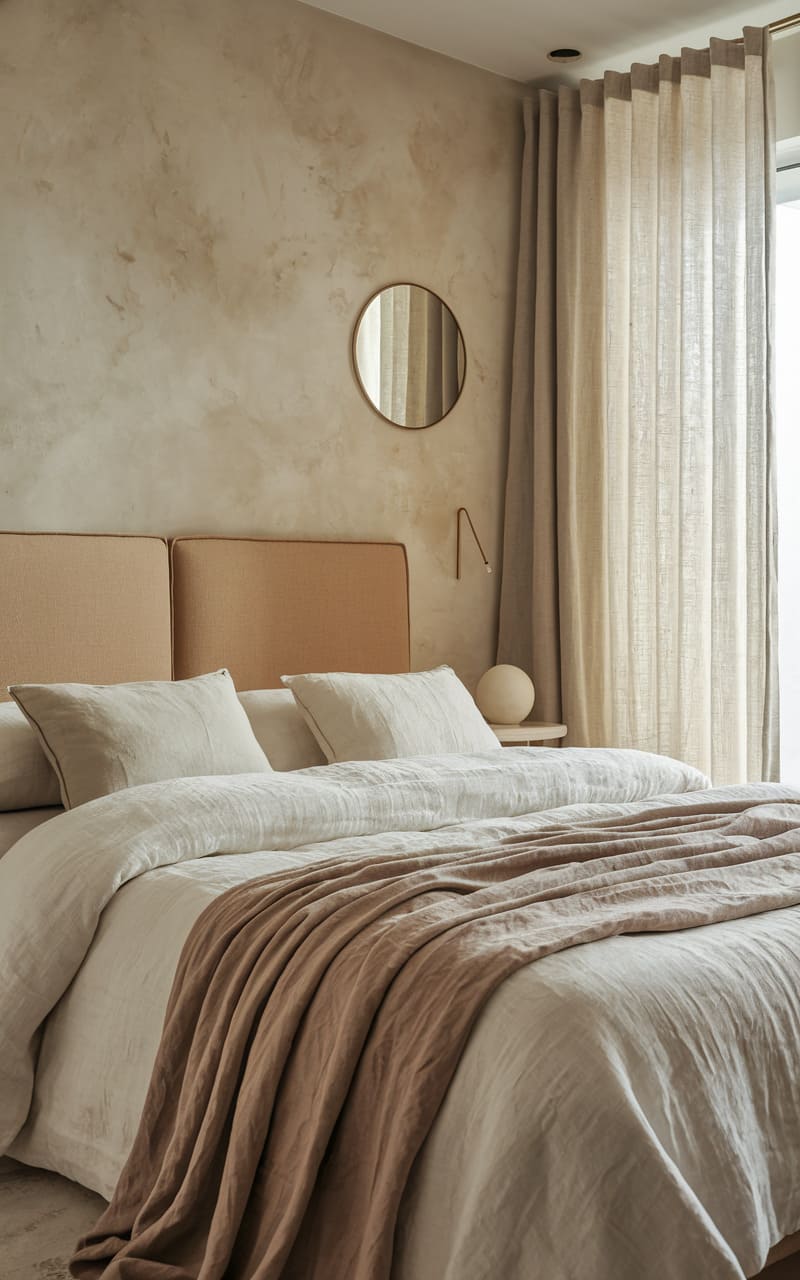 192. Minimalist Bedroom with Warm Taupe and Linen Textures
