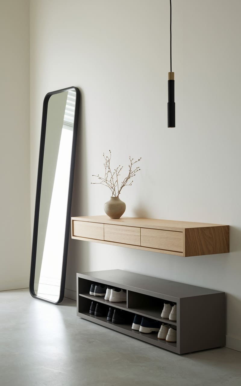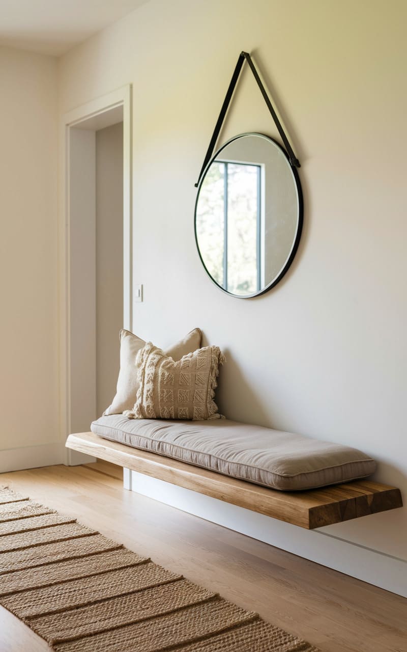 158. Minimalist Entryway with a Bench and Floating Shelf