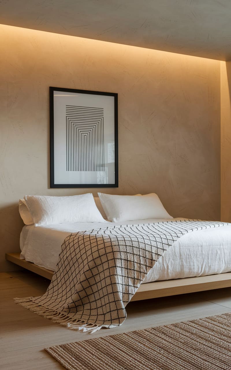 162. Minimalist Bedroom with Earthy Tones and Rich Textures