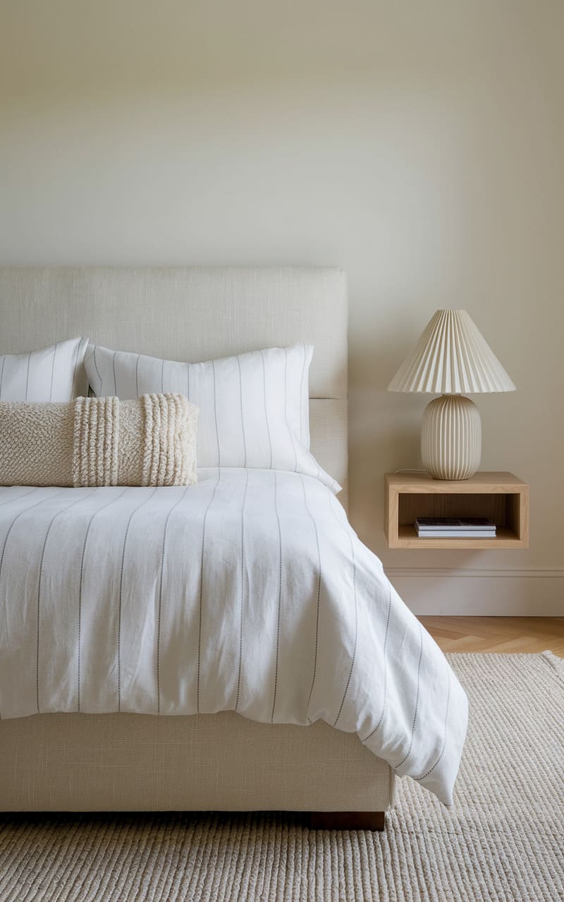 39. Minimalist Bedroom with Subtle Pinstripe Bedding