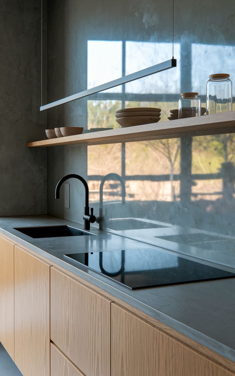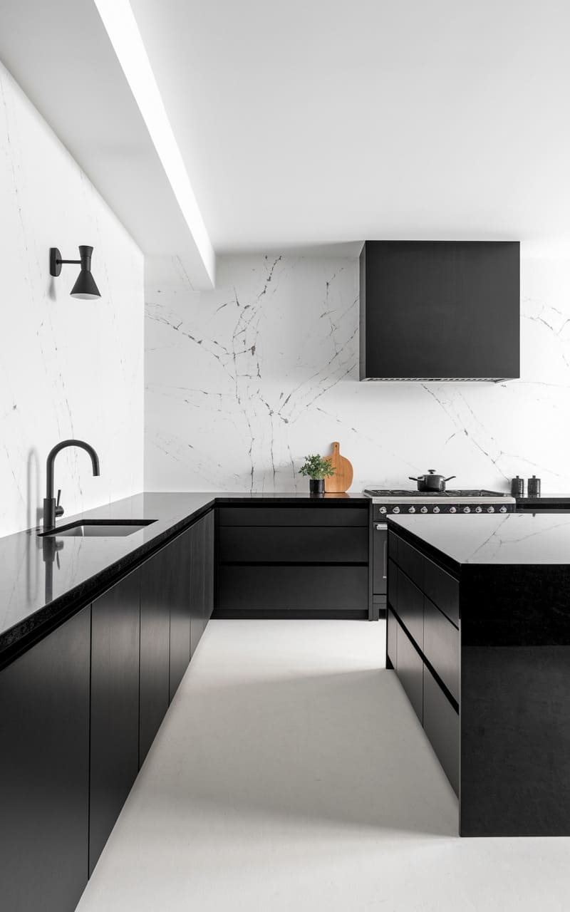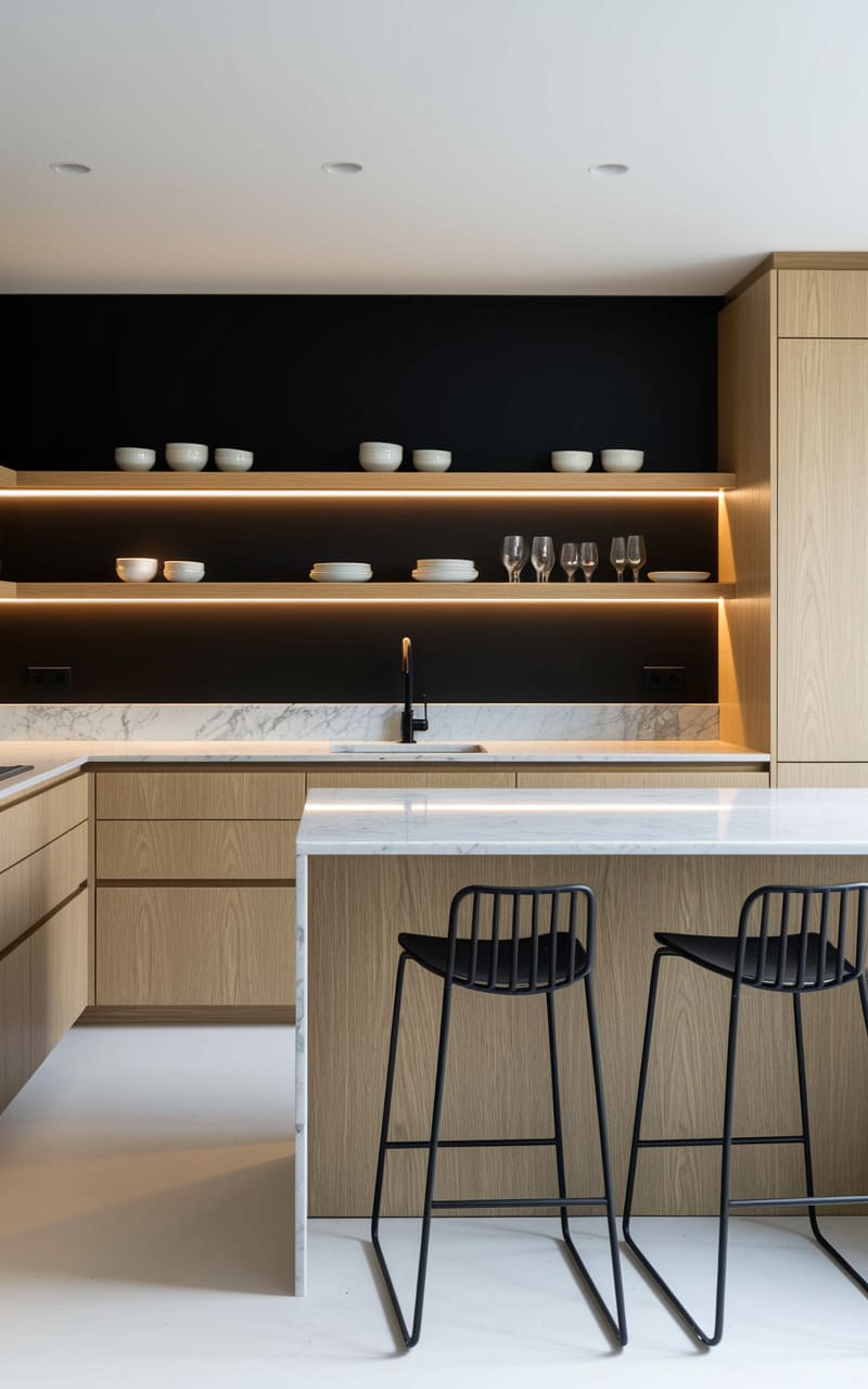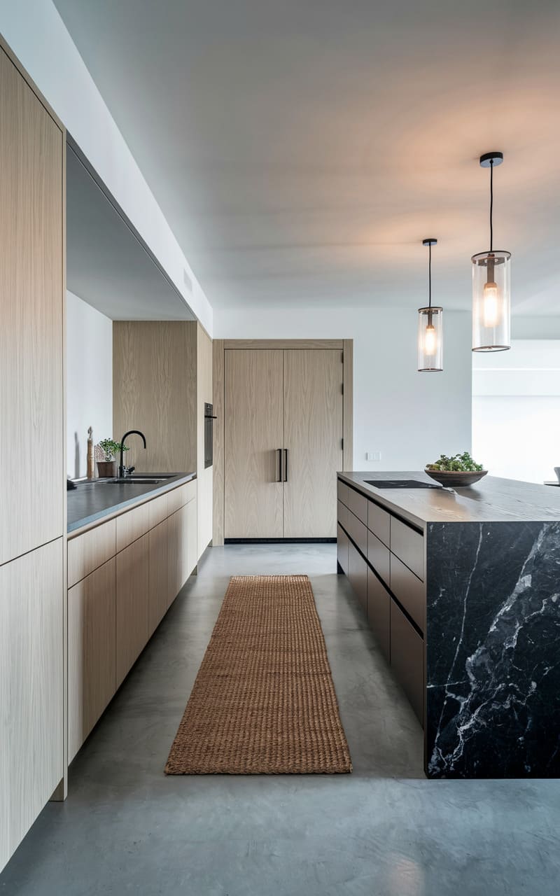 2. Monochrome Minimalist Kitchen with Warm Accents