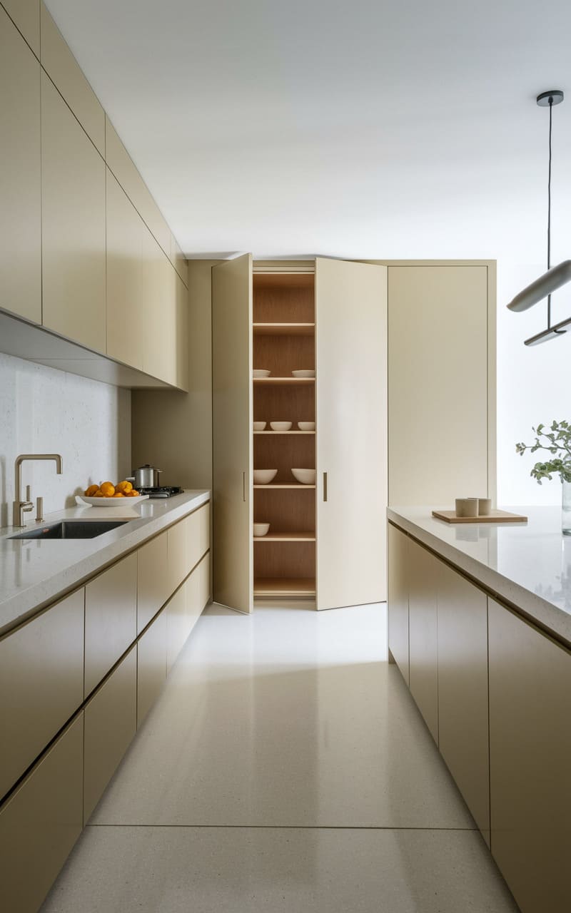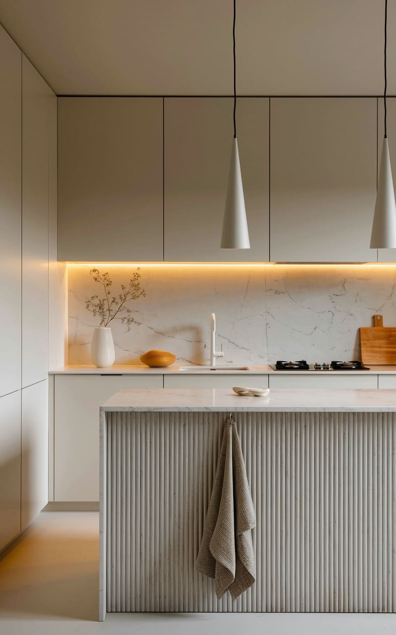 33. Minimalist Kitchen with Vertical Fluted Cabinetry