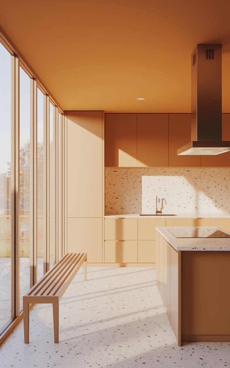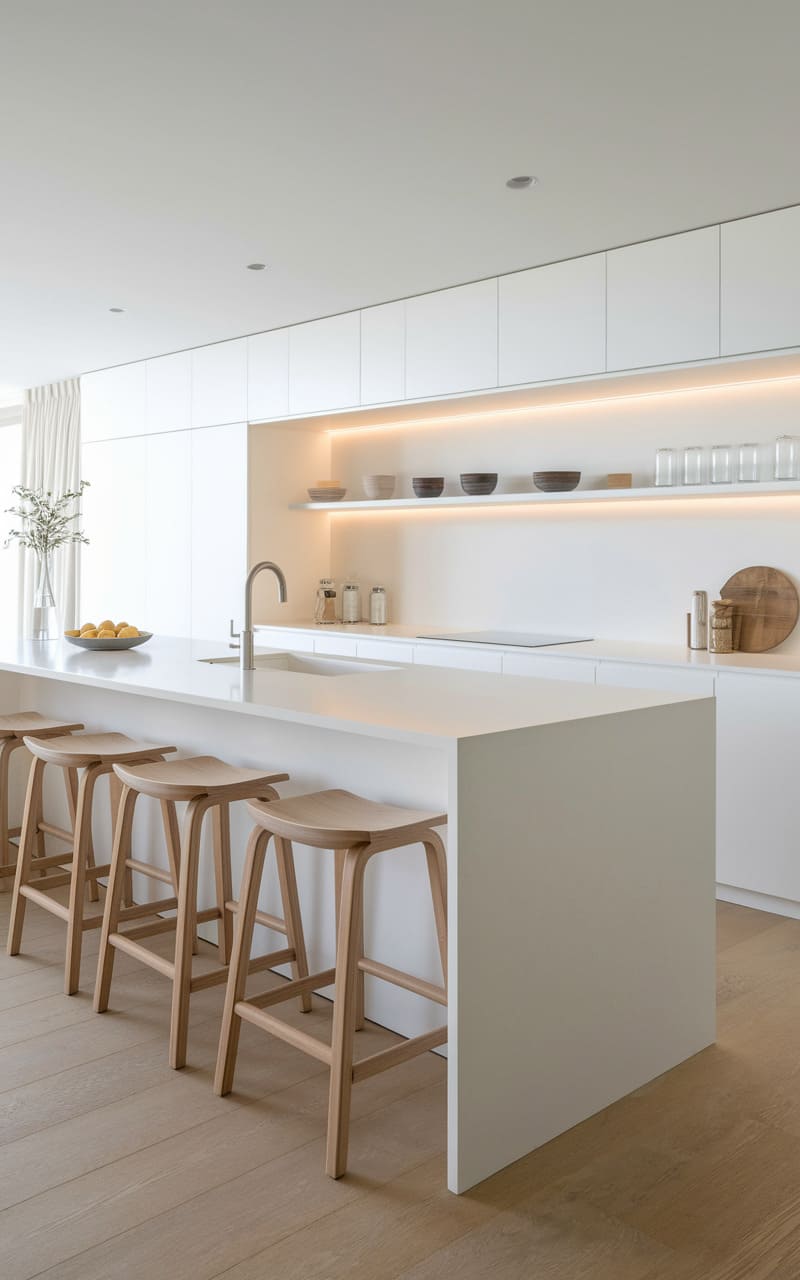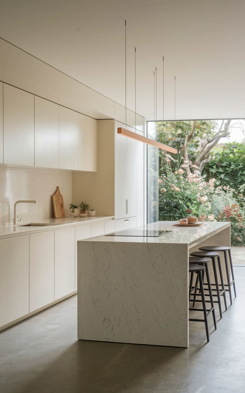 14. Minimalist Kitchen with a Sleek Waterfall Island