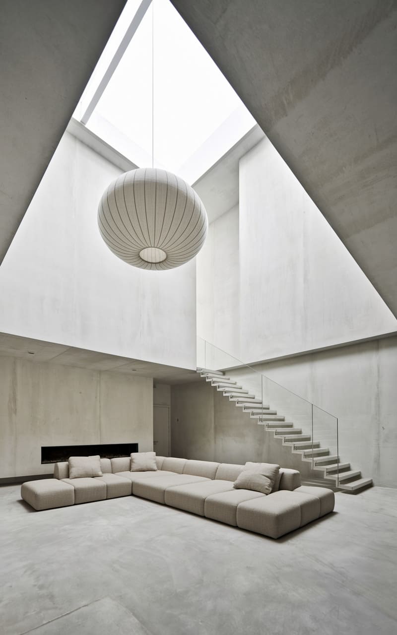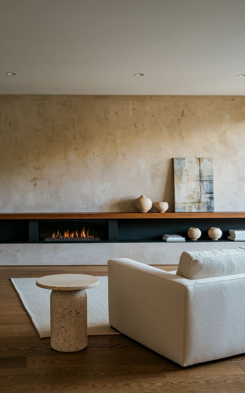 41. Minimalist Living Room with a Polished Concrete Accent Wall