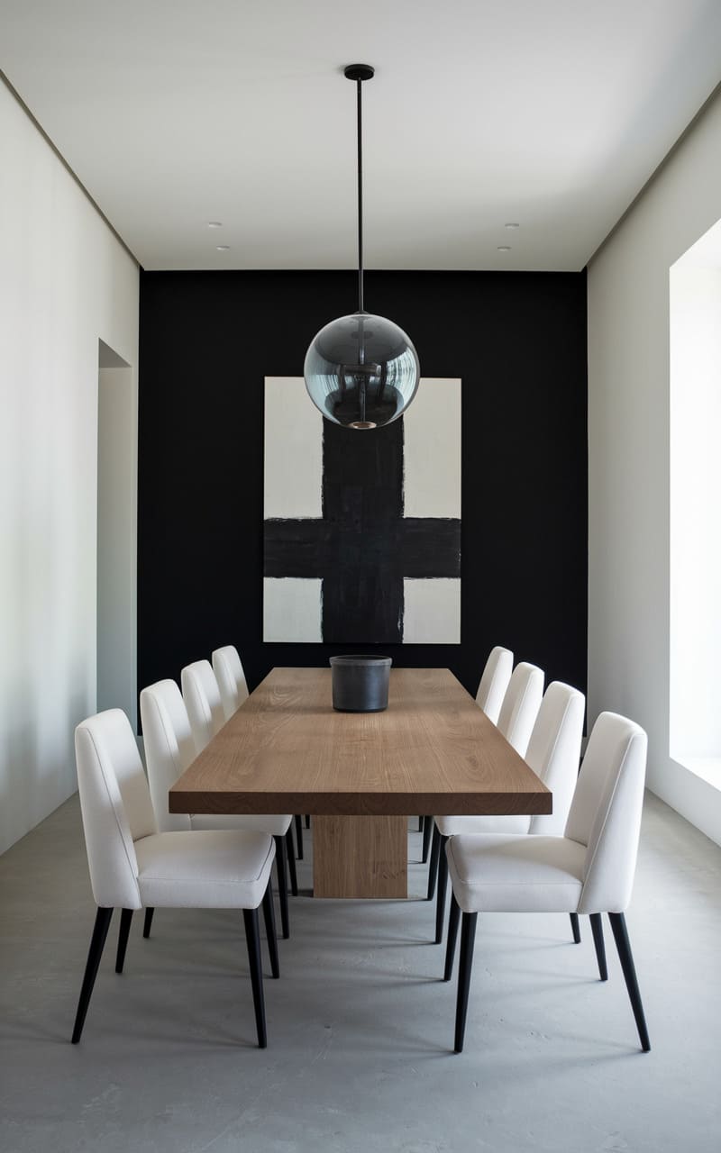 16. Minimalist Dining Room with a Slab-Style Table