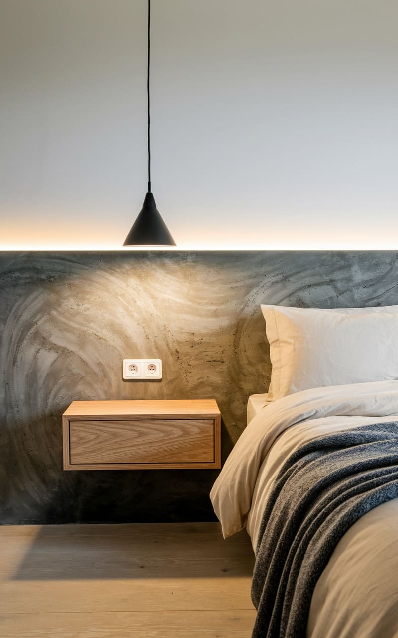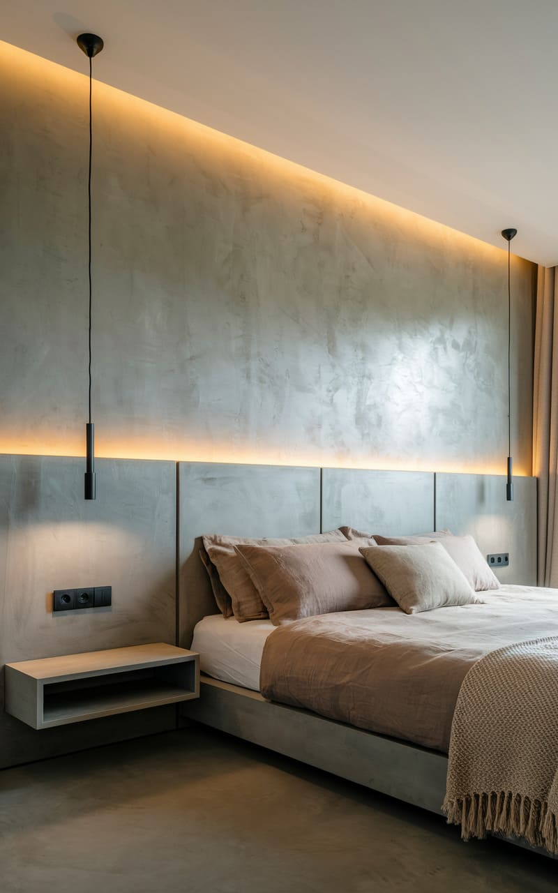 19. Minimalist Bedroom with a Built-In Headboard Wall