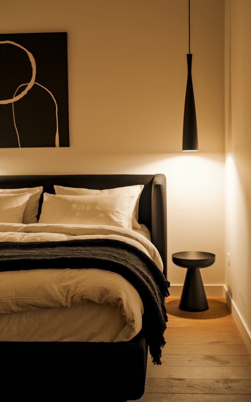32. Minimalist Bedroom with Geometric Line Art Decor