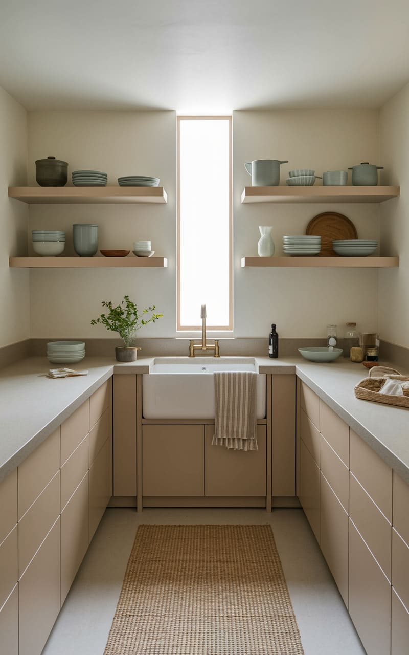 179. Minimalist Kitchen with Soft Coral and White Accents