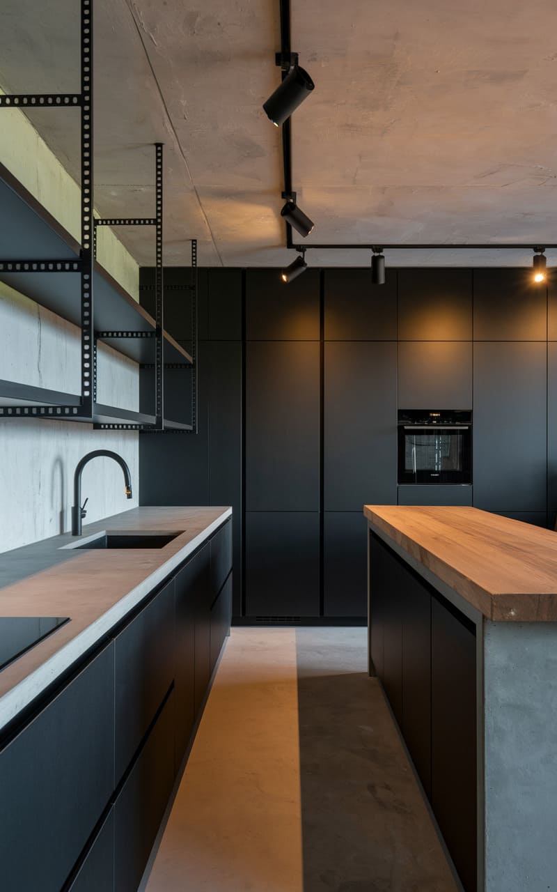 170. Minimalist Kitchen with Black and Charcoal Accents