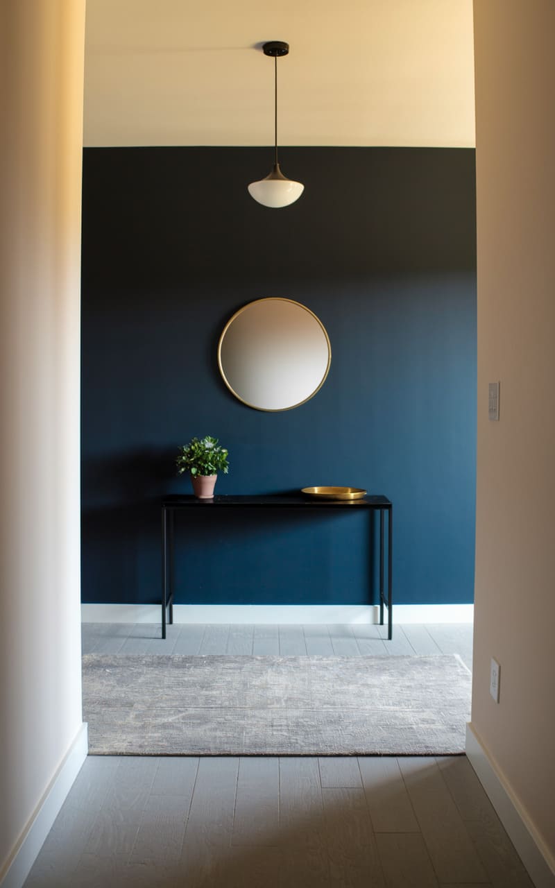 166. Minimalist Entryway with Navy Blue Accents
