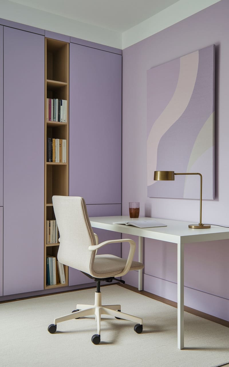 168. Minimalist Home Office with Muted Lavender and Neutral Tones