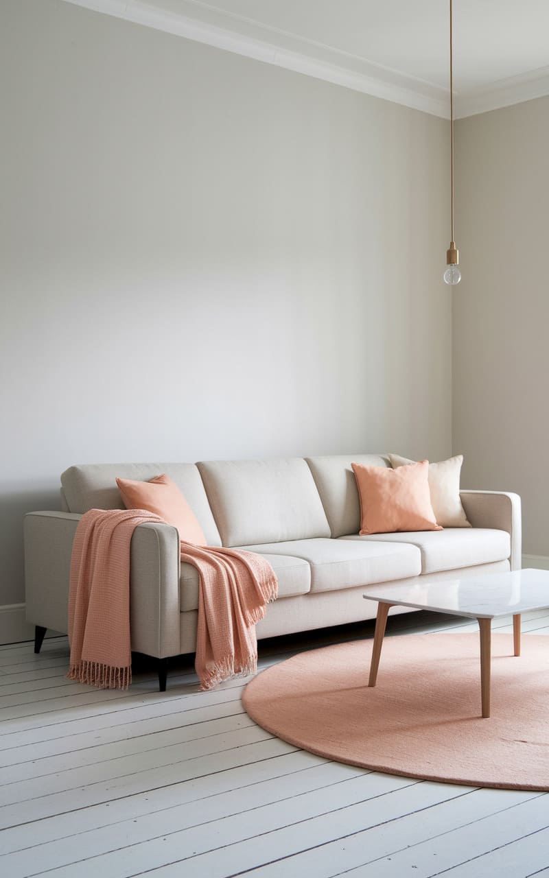 171. Minimalist Living Room with Soft Peach and Light Gray Accents