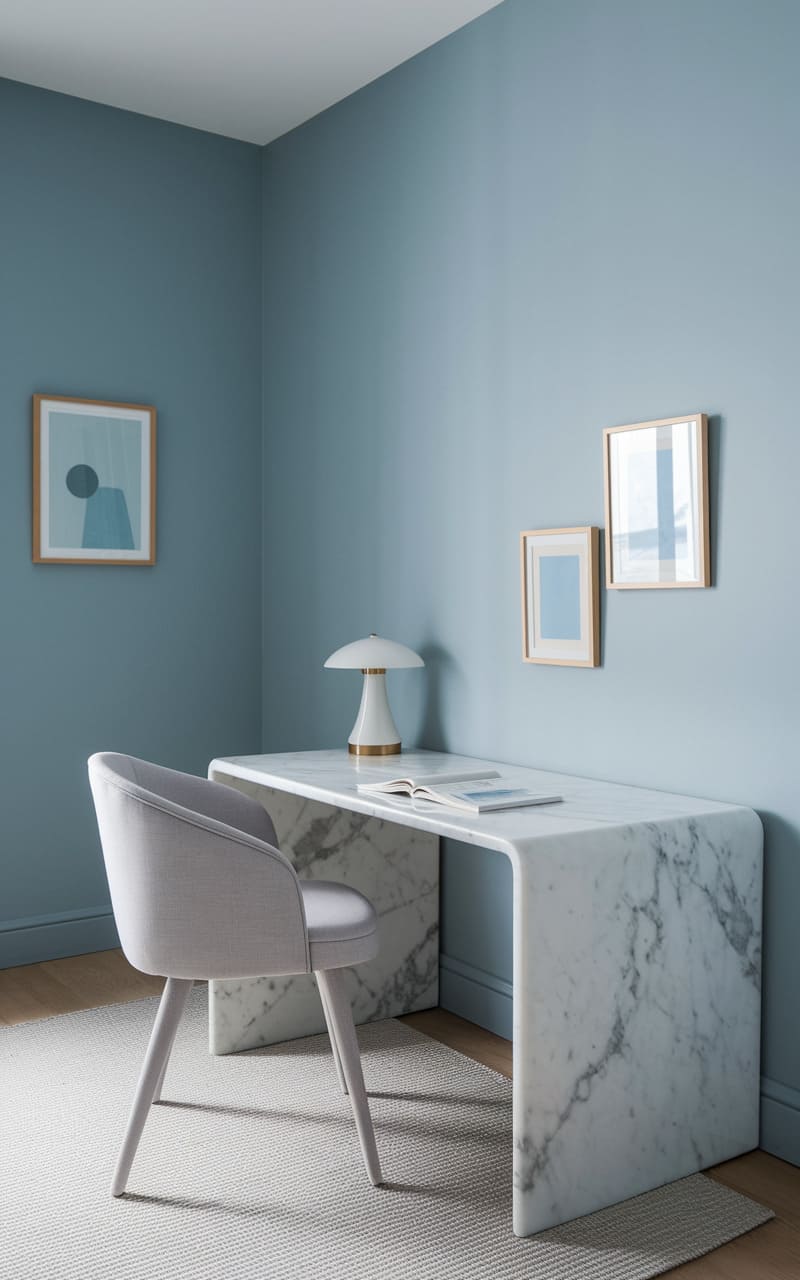 193. Minimalist Home Office with Soft Blue and Marble Textures