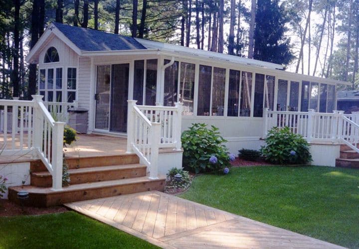 If you think that a small mobile home must automatically come with a tight porch, this proves you wrong! This single wide home has an absolutely gorgeous, shiny porch made of light wood. This is exactly what you need if you love entertainment and relaxation. Also, it makes your home look very fresh and inviting!