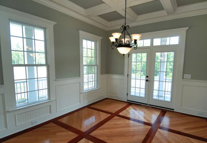 Do you love space and airy homes? There’s nothing better than a complete makeover of your entrance. This photo shows the beauty of the combination between contrasting colors and wide, large windows. This owner decided to have as much free space as possible while the squared floor pattern matches the ceiling. The bold lighting perfectly complements the beautiful, glossy floors.