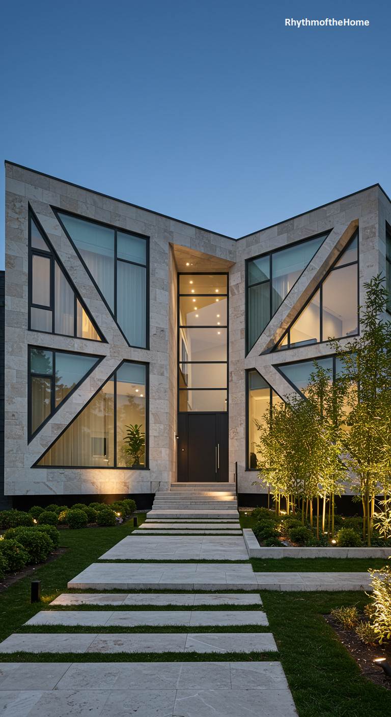 43. Geometric Modern Home with Grid Facade