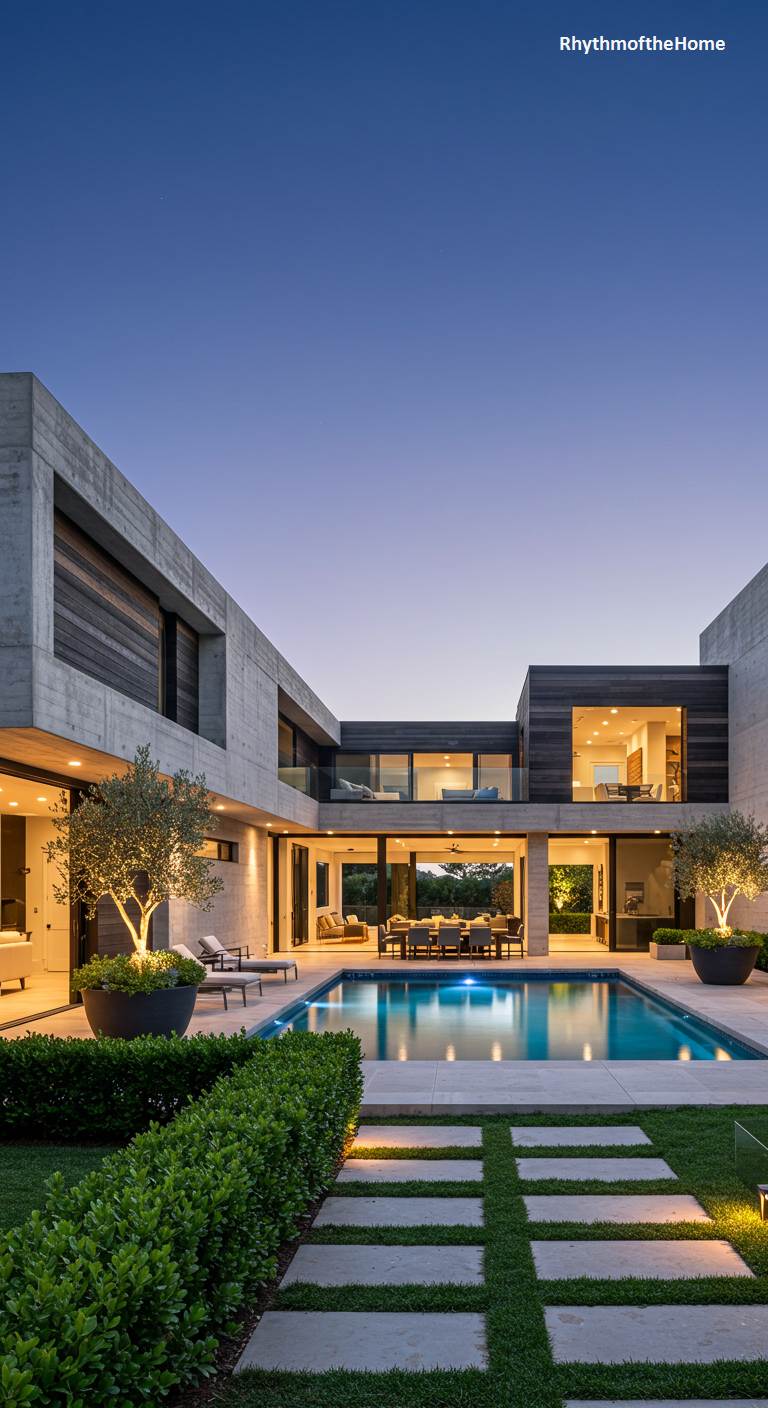 6. Twilight Serenity at a Concrete Modern Home