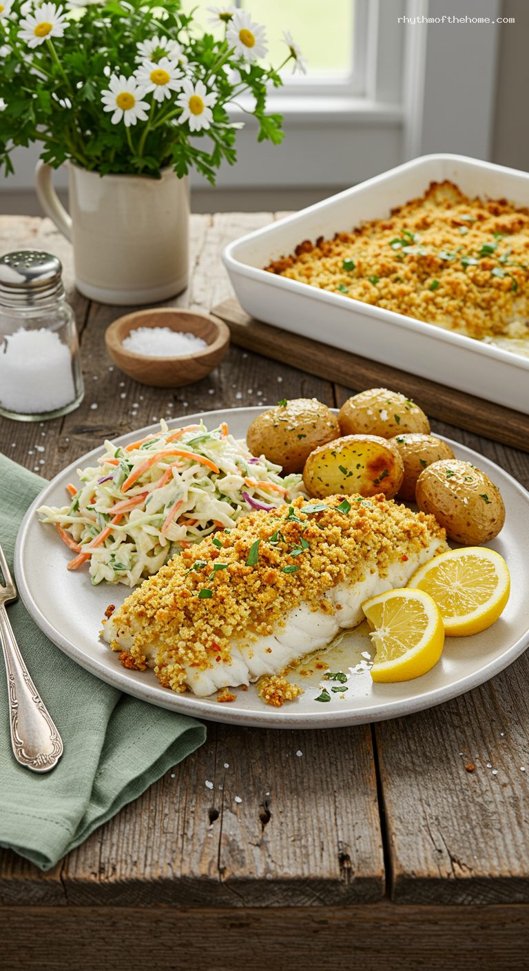 - Balanced plate: crisp-tender potatoes and creamy, tangy coleslaw round out the fish beautifully.