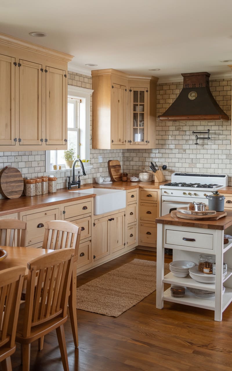 31. Rustic Farmhouse Kitchen With Oak Cabinets