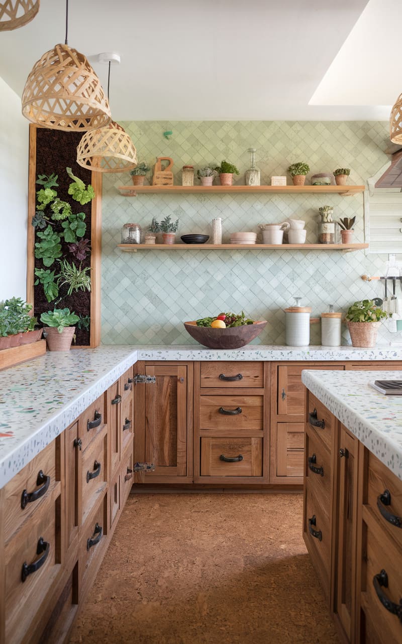 Sustainably sourced oak cabinets form the base of this eco-friendly kitchen design. The natural material is durable and has a lower environmental impact. Using reclaimed oak adds unique character and further boosts sustainability. Non-toxic finishes ensure a healthy indoor environment. Pairing the cabinets with recycled glass countertops or bamboo flooring enhances the green theme. This kitchen proves that style and environmental consciousness go hand-in-hand.