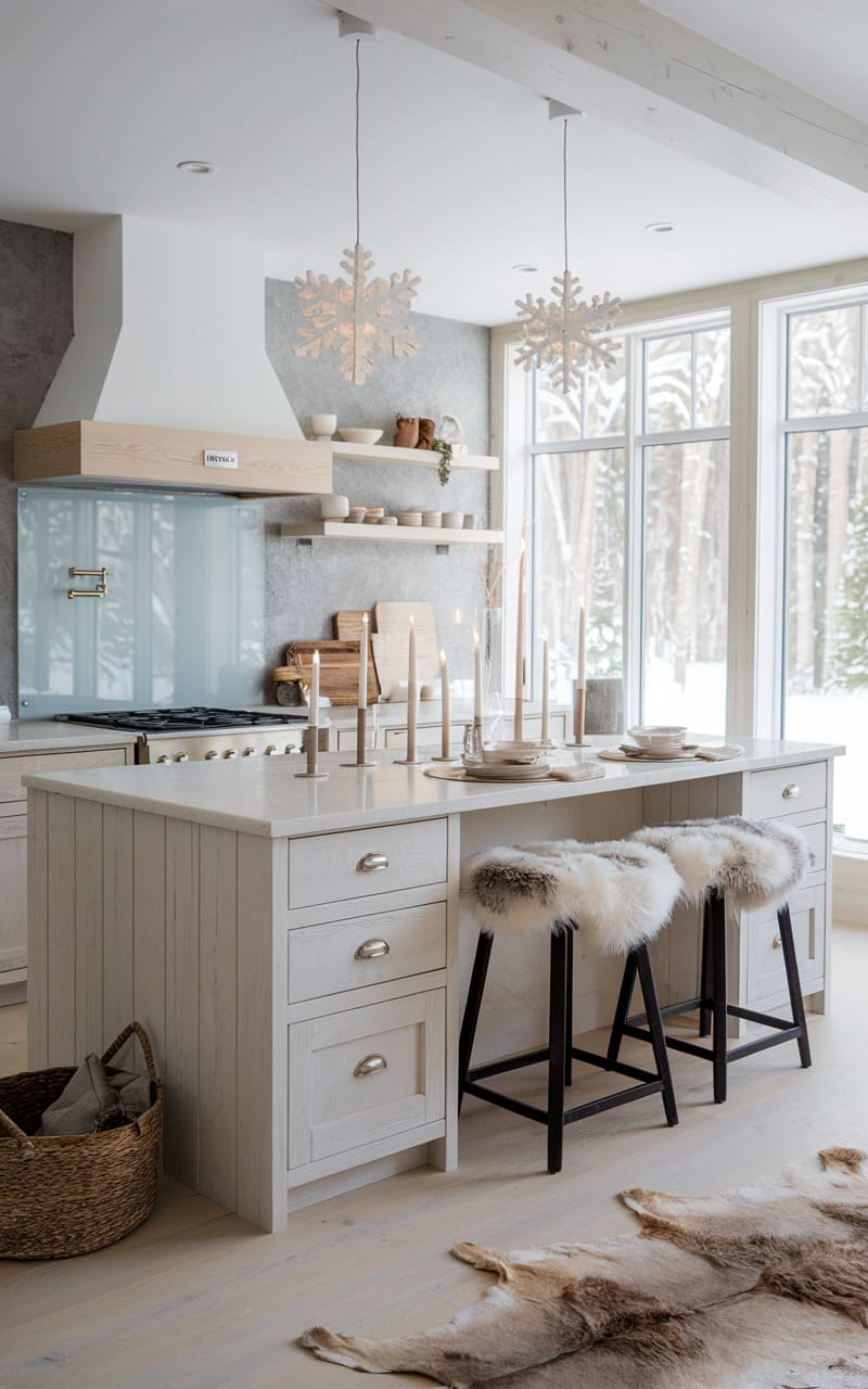 White oak cabinets define this bright and functional Scandinavian kitchen. The pale wood with its subtle grain fits the Nordic aesthetic of light and simplicity. Clean lines and flat-panel doors emphasize the minimalist design. Paired with white walls and light wood flooring, the space feels open and airy. Minimalist hardware, often integrated or very simple pulls, maintains the uncluttered look. This kitchen perfectly balances natural materials with modern functionality.