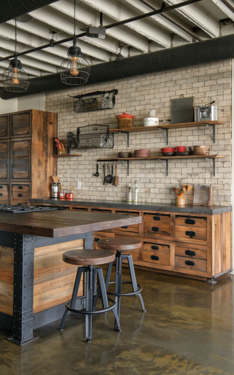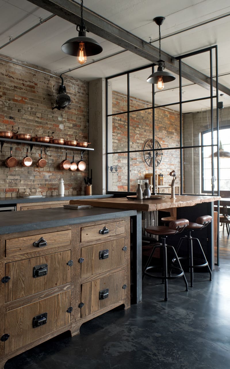 27. Industrial Kitchen With Weathered Oak Cabinets