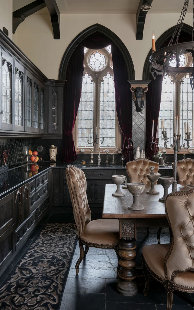 20. Gothic Kitchen With Black Cabinets