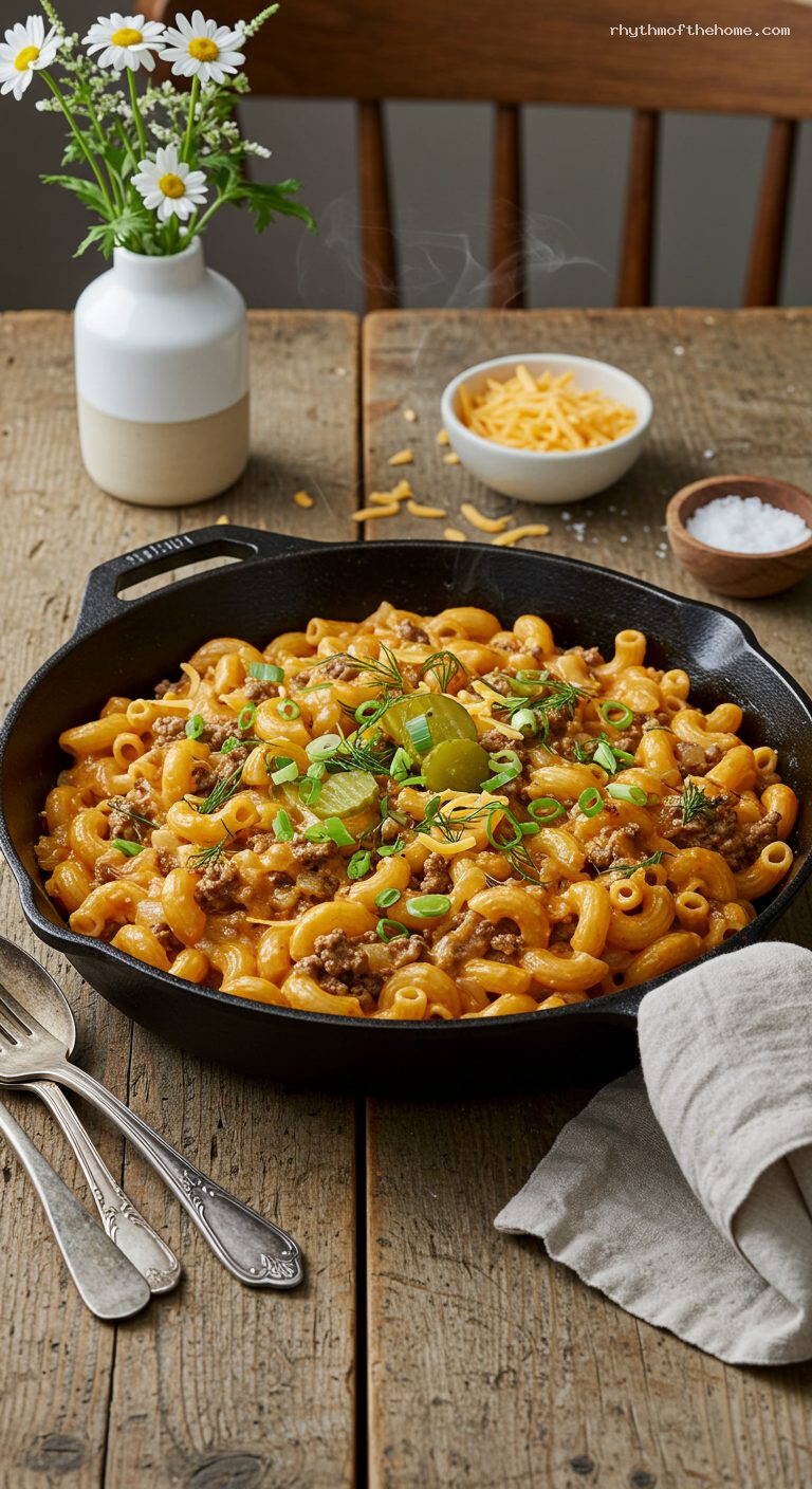 - Turkey Cheeseburger Pasta: Substitute ground turkey (93% lean). Add 1 tbsp olive oil and 1 tbsp tomato paste in Step 3 for richer body; cook turkey to 165°F.