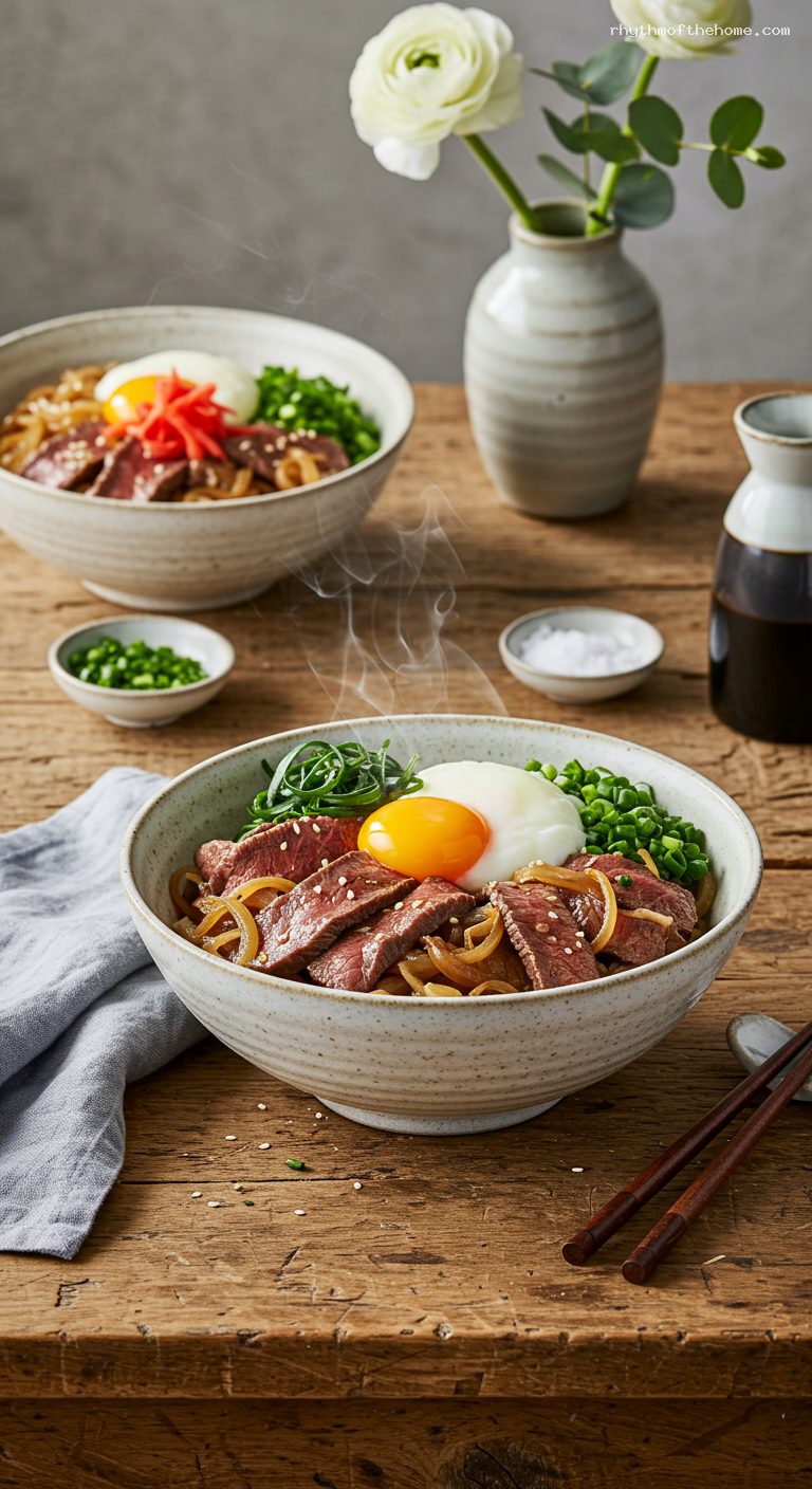 Quick Gyudon Beef Bowl with Soft Egg
