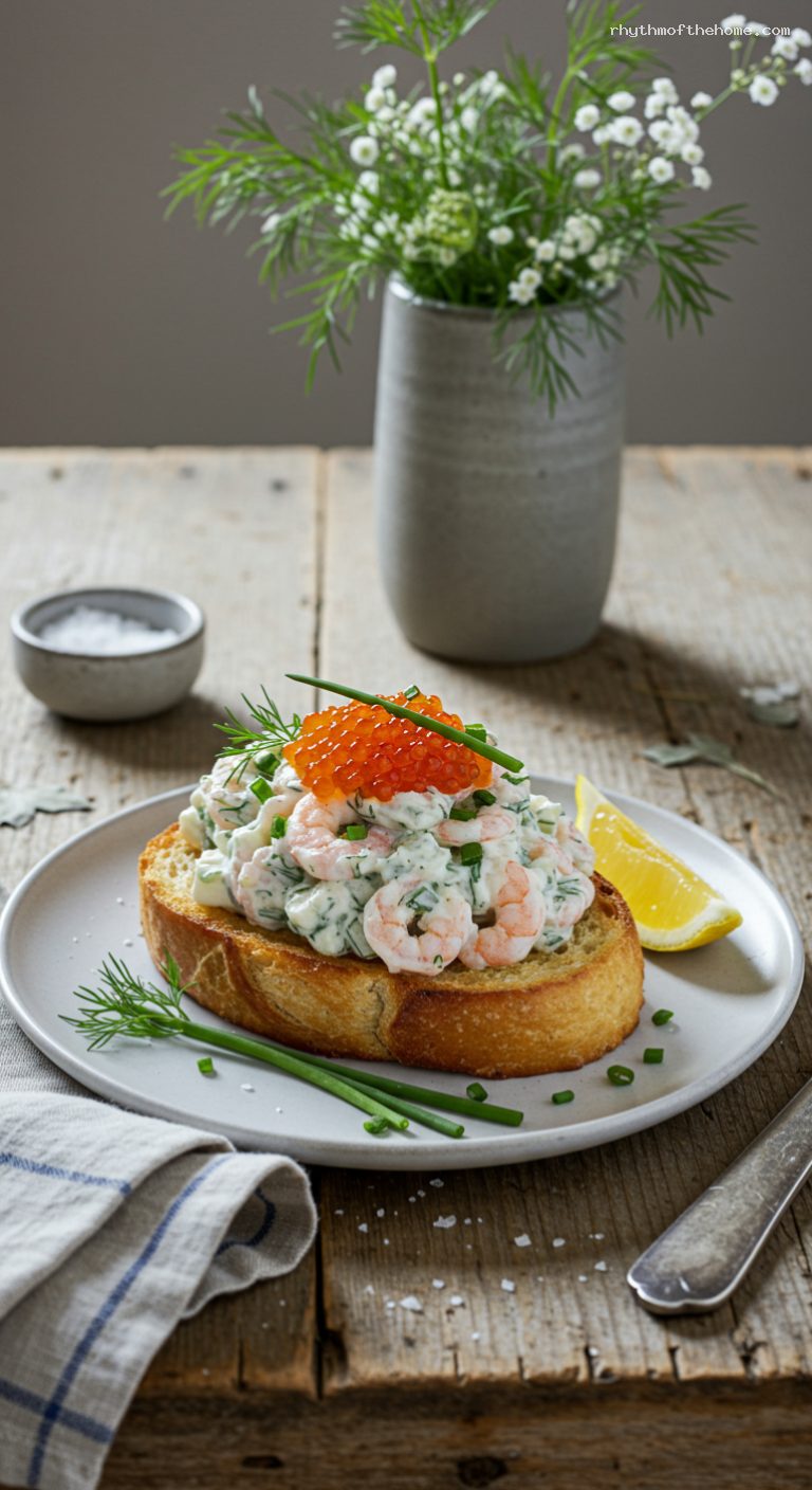 - Seafood: Cooked small shrimp (51/70 or 70/90 count), trout or whitefish roe (or löjrom if available)
