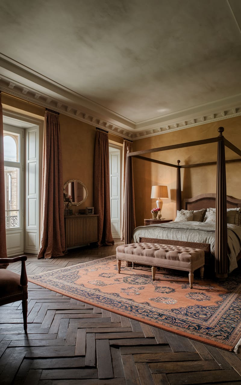 150. Earthy Renaissance-Inspired Bedroom with Rustic Elements