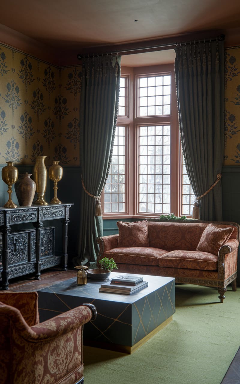 40. Warm and Earthy Renaissance-Inspired Living Room