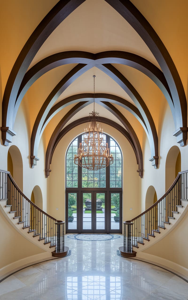 146. Transitional Foyer with Renaissance-Style Columns and Arched Entryways