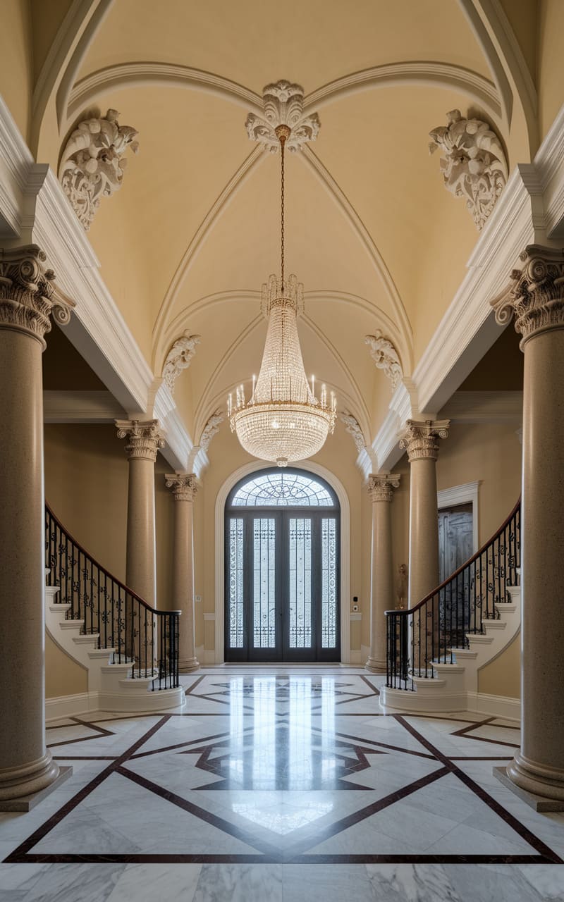 18. Grand Renaissance Entryway with Polished Concrete and Bronze Fixtures