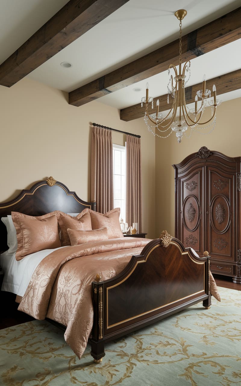 137. Warm and Inviting Renaissance-Inspired Bedroom with Wooden Accents