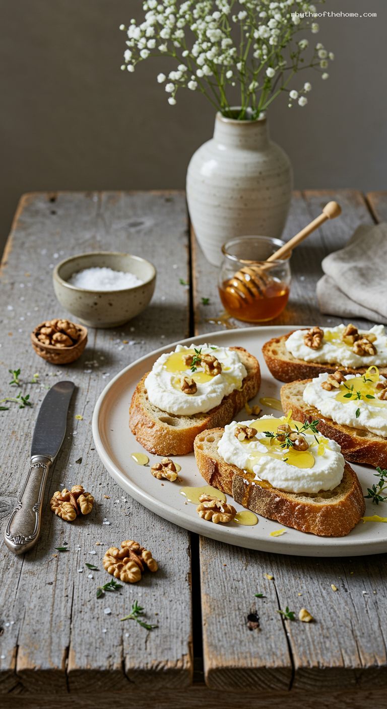 - 5. Spread ricotta on hot toast. Top with walnuts; drizzle with hot honey.