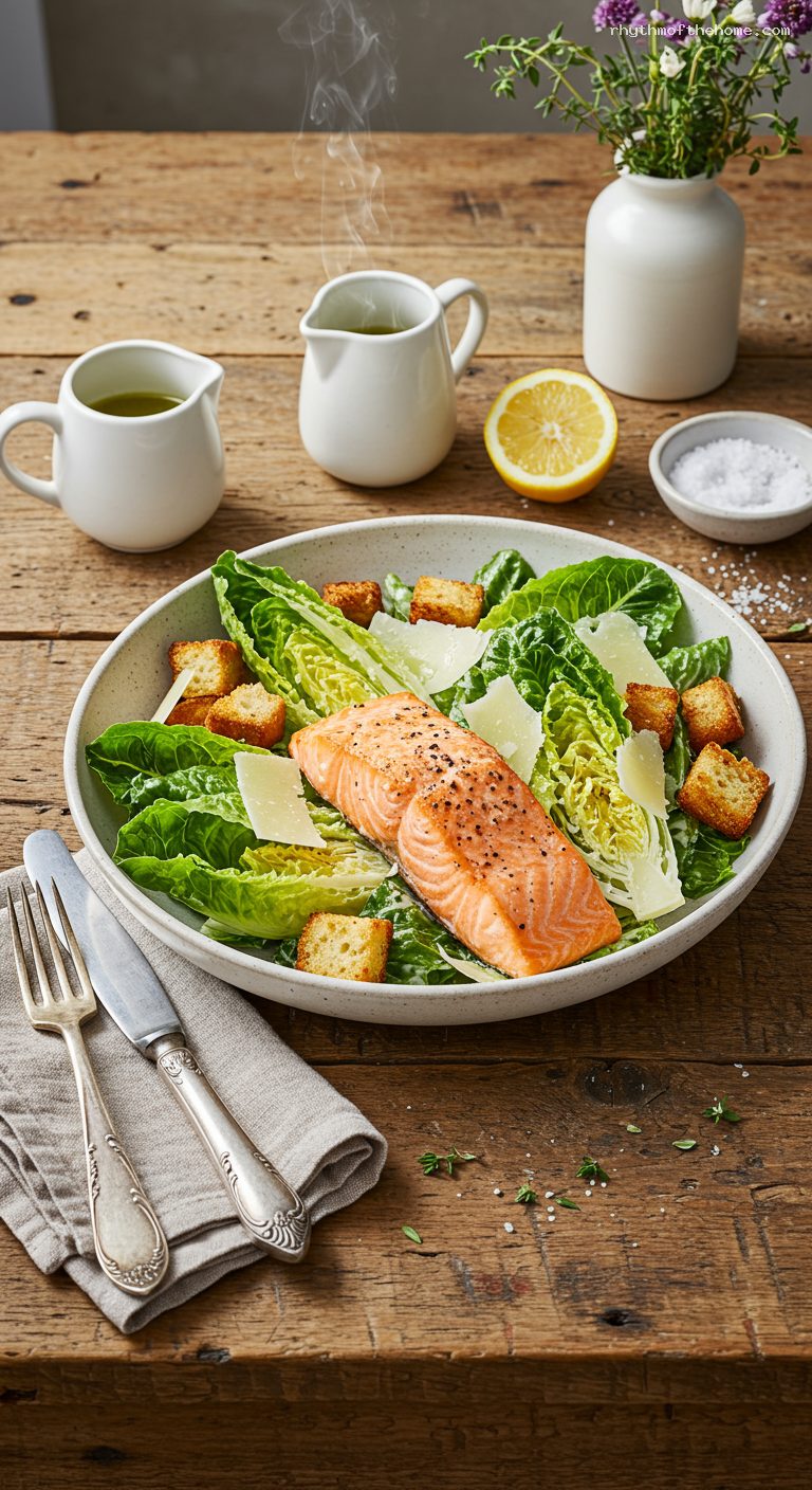 - Grilled Salmon Caesar: Grill salmon over medium-high heat, 3–4 minutes per side, for smoky notes.