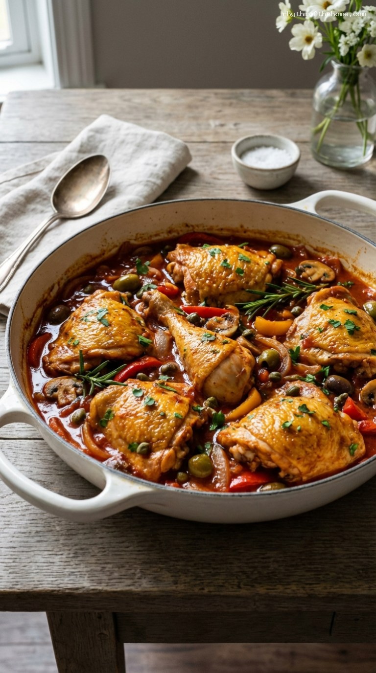 - Slow Cooker Version: Brown the floured chicken and sauté the aromatics on the stovetop, then transfer everything to a slow cooker. Cook on LOW for 6–7 hours or on HIGH for 3–4 hours, adding the olives and capers in the last 30 minutes.