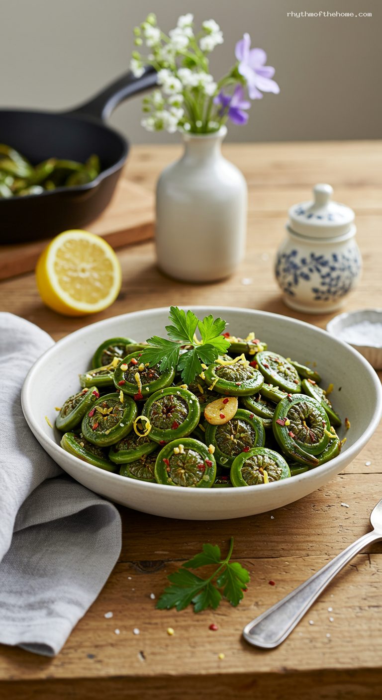 - Bright, springy flavors: lemon, garlic, and parsley let the fiddleheads shine.