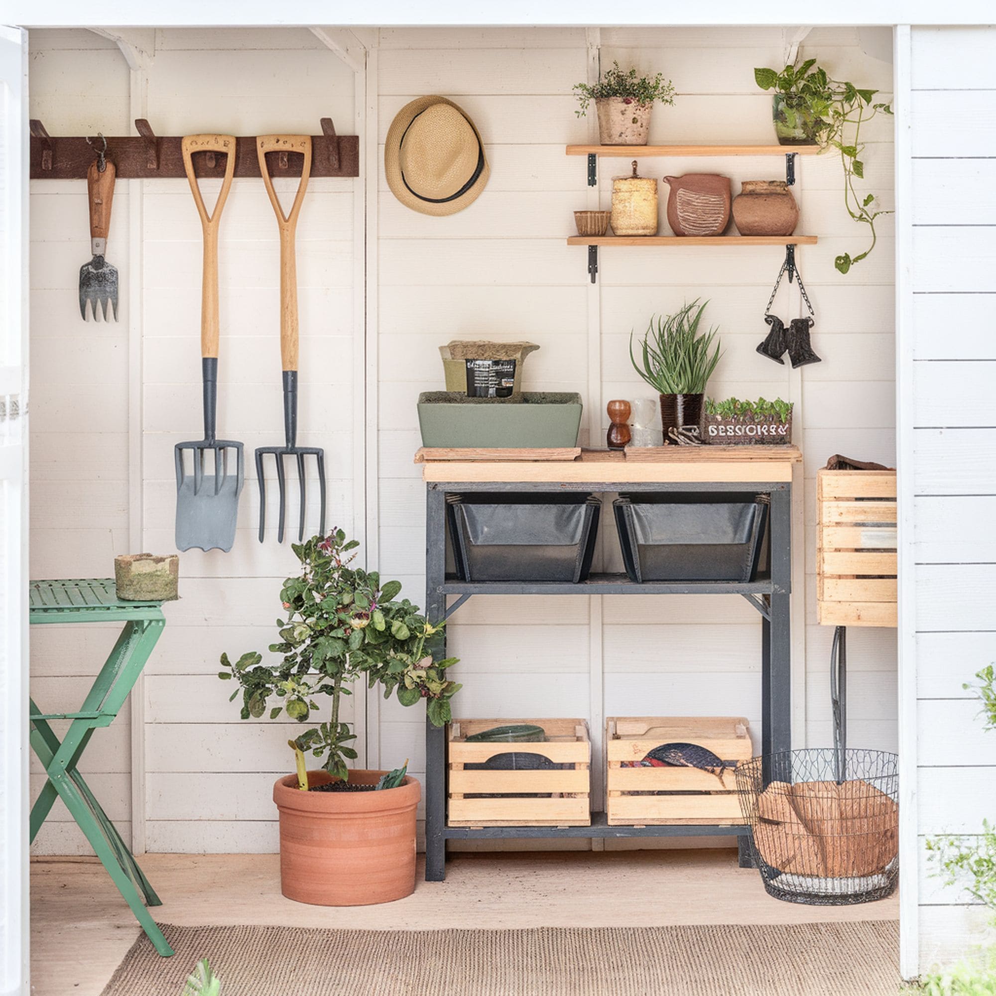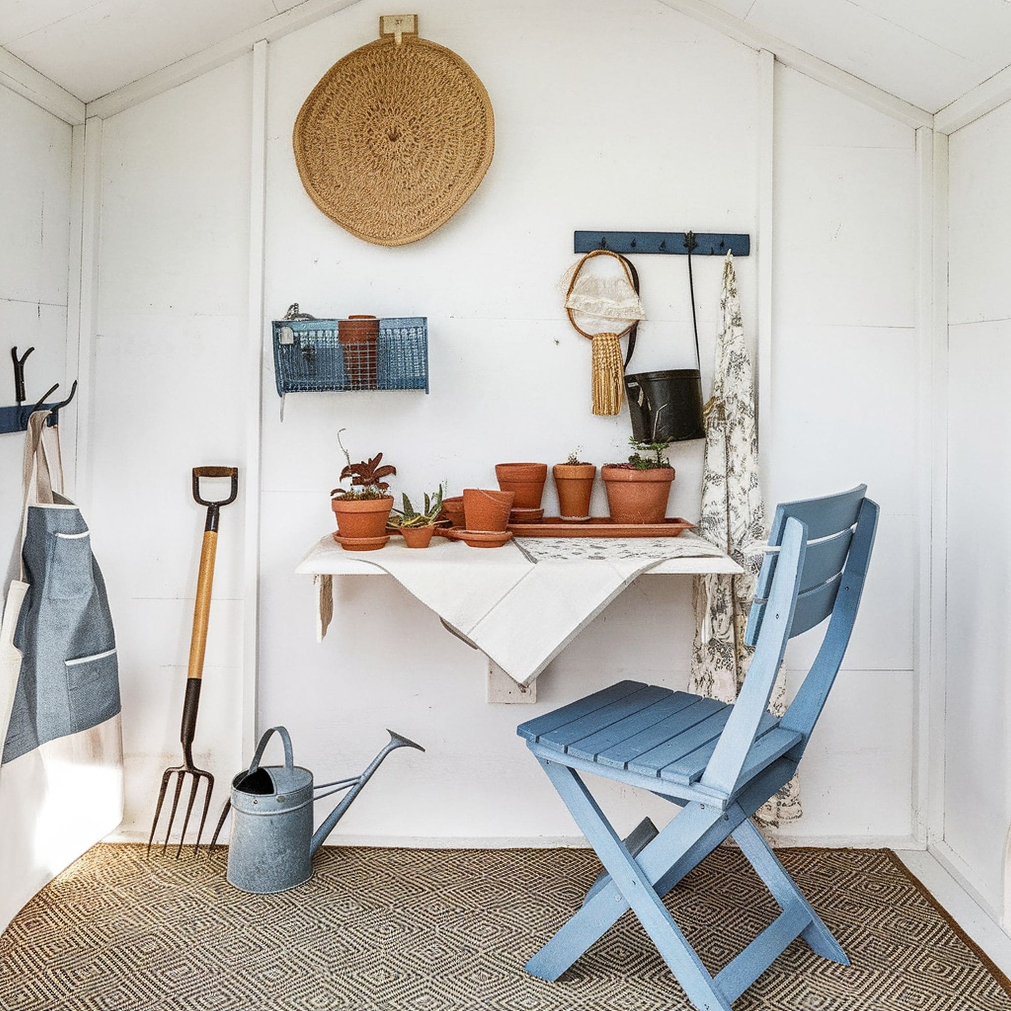 Not everyone has the space required to create both a she shed and a functional shed. That often means that you’ll have to create a combination of the two. Design your she shed with some sleek storage features so there’s no need to give up on functionality. You can take this opportunity to use your creativity and decorate the space to your liking while still keeping all the essential gardening tools close at hand. Stylish shelves and hooks allow you to store items with space-saving efficiency. A compact potting bench isn’t just practical to have, but can also show off some charming looks for your she shed.